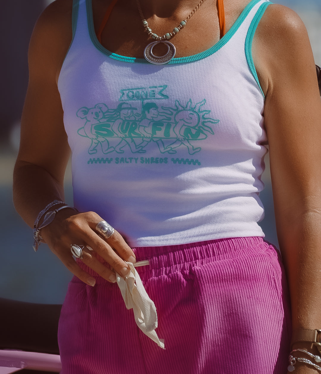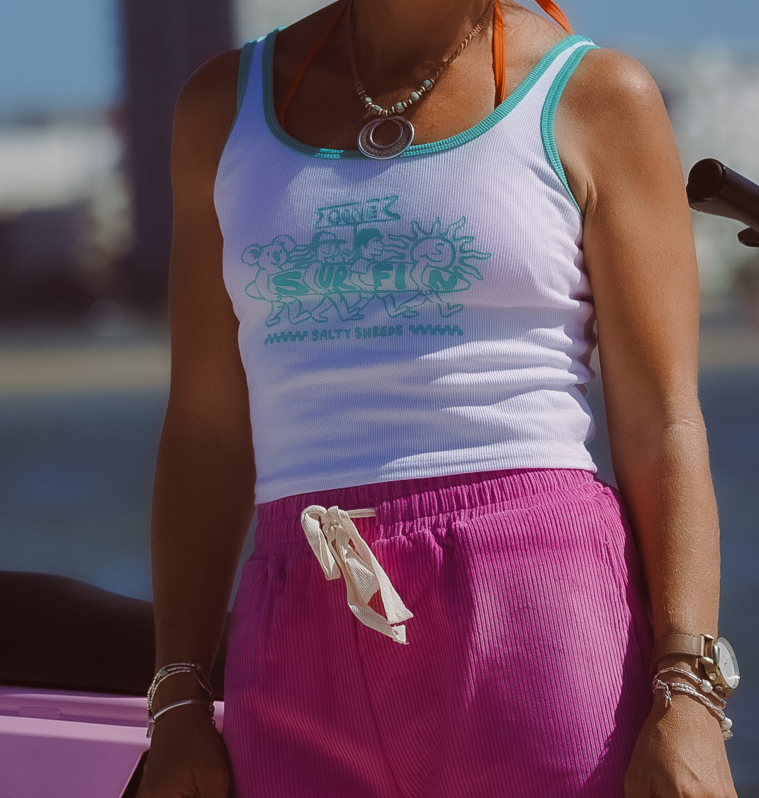 The ultimate ringer tank for our salty ladies little & big! Designed from 100% organic cotton, featuring our fresh new ' gone surfin' artwork, these tanks are an absolute vibe, and the comfiest addition to your wardrobe.