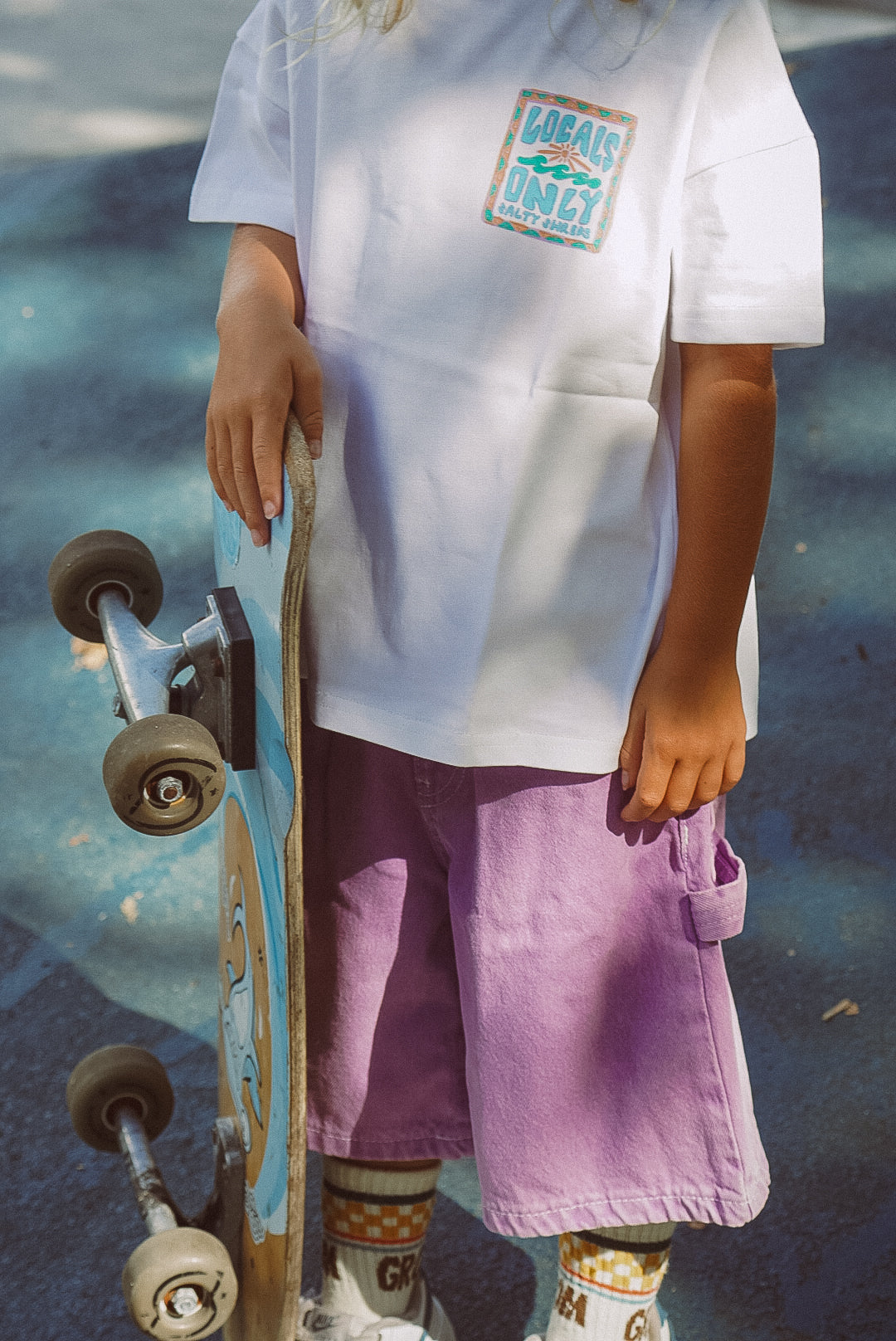 Designed from 100% organic cotton, featuring some fresh new artwork and vibrant tones, our new surf skate tees are a vibe! Mix & match these with any of our groms new shorts or denim range for an epic outfit.