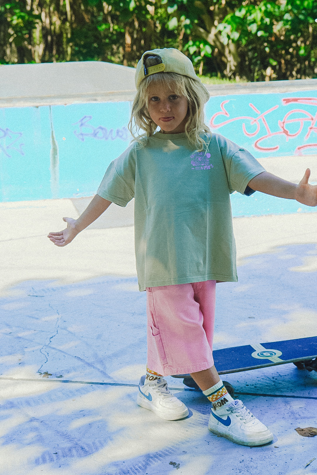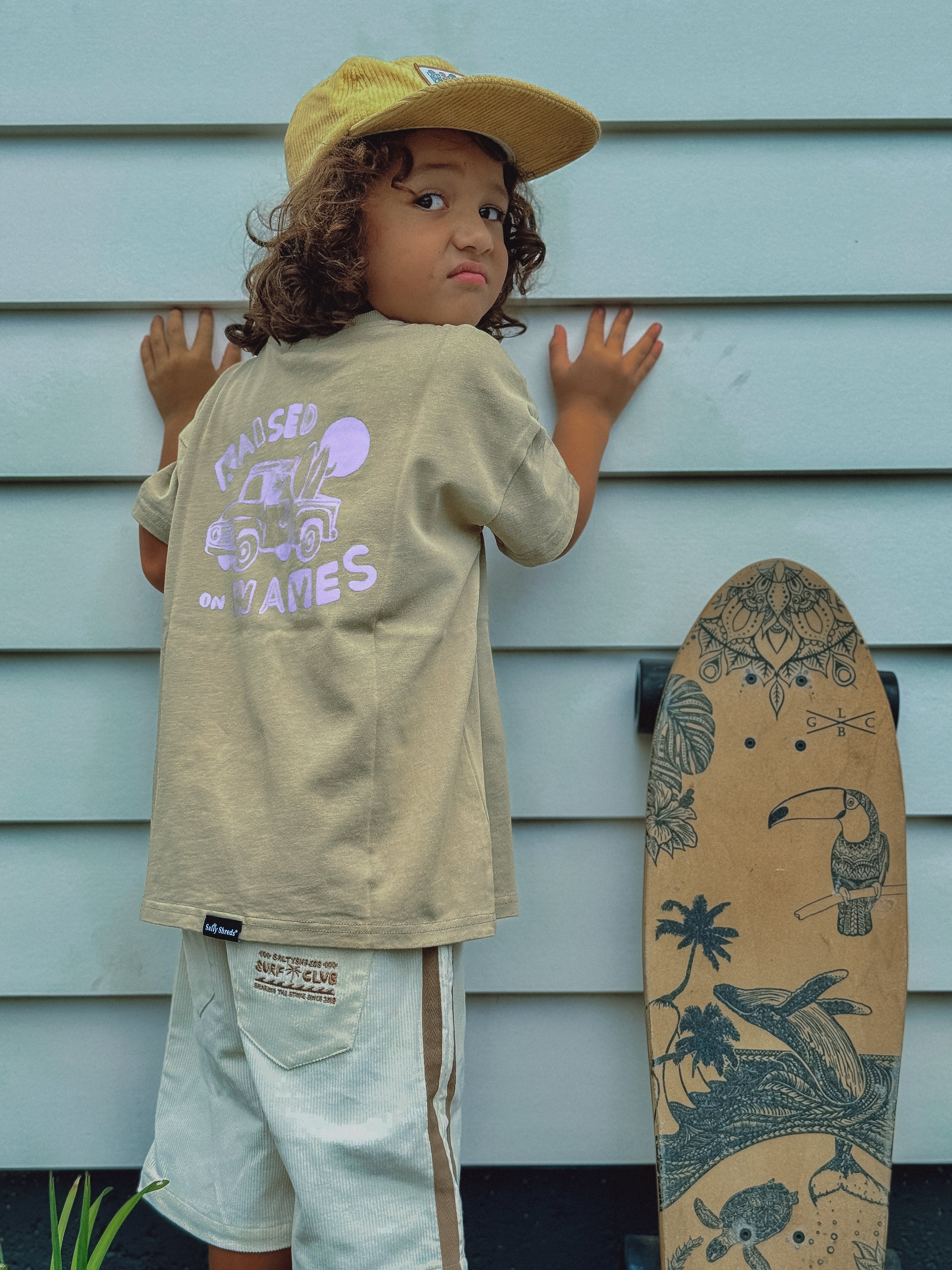 Designed from 100% organic cotton, featuring some fresh new artwork and vibrant tones, our new surf skate tees are a vibe! Mix & match these with any of our groms new shorts or denim range for an epic outfit.