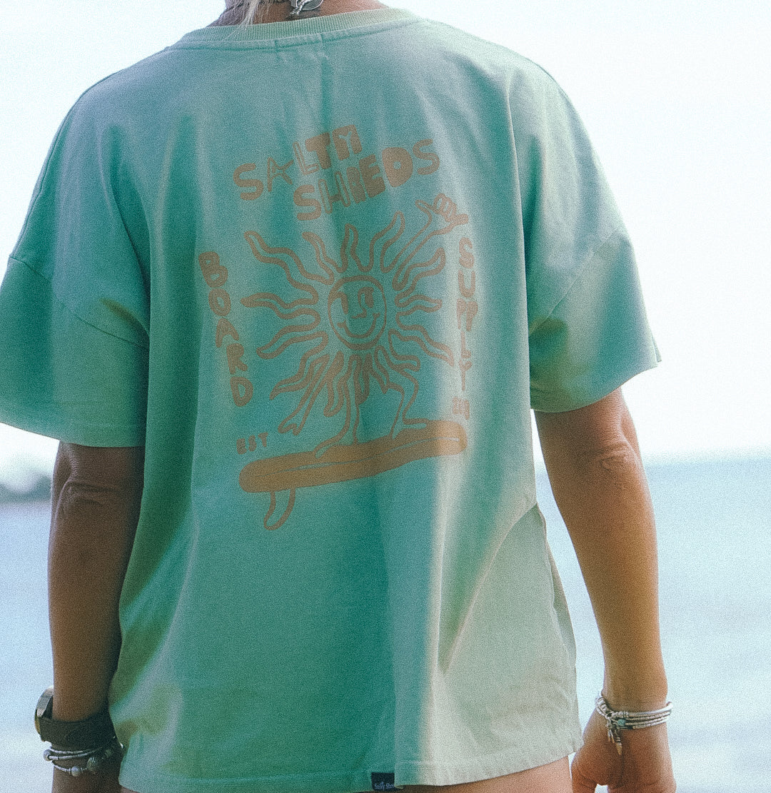Salty Shreds Board supply vintage relaxed sunshine Shaka tee - Khaki wash - Ladies