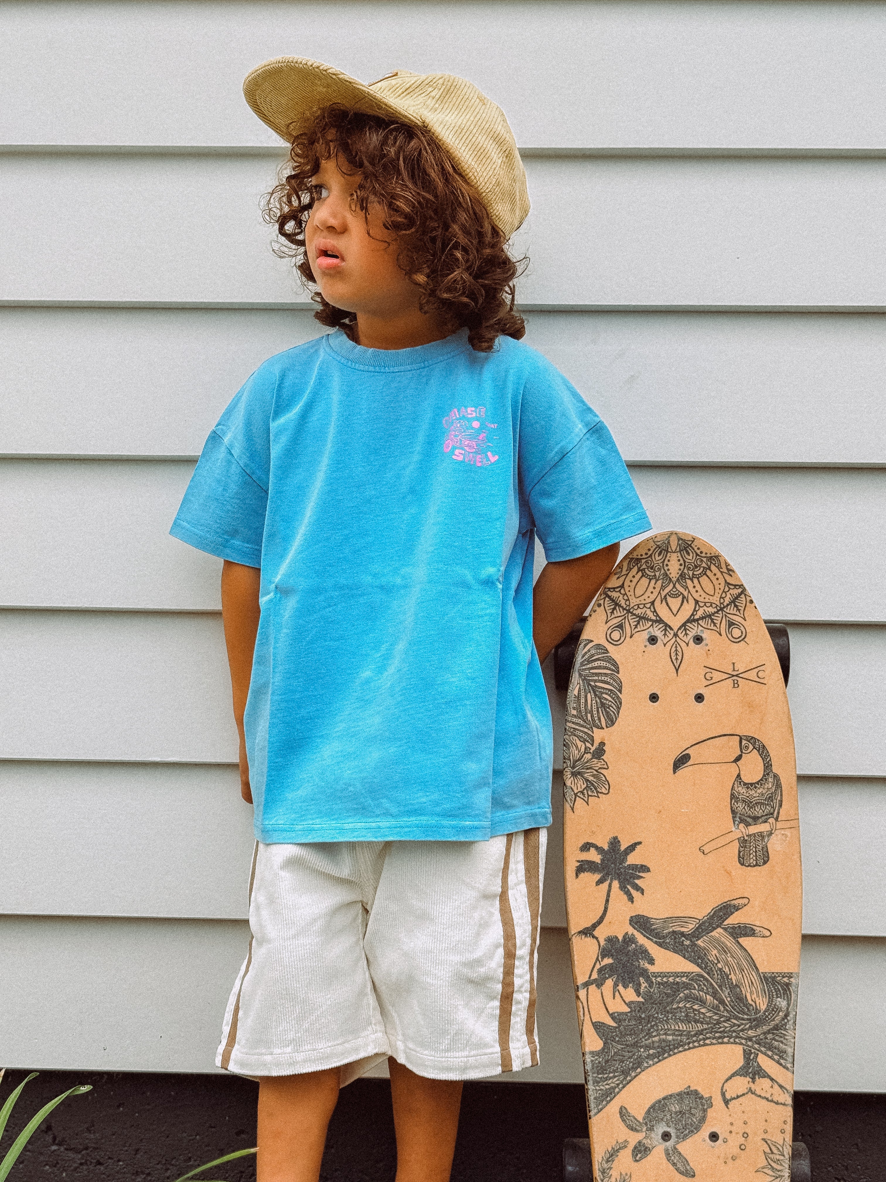 Designed from 100% organic cotton, featuring some fresh new artwork and vibrant tones, our new surf skate tees are a vibe! Mix & match these with any of our groms new shorts or denim range for an epic outfit.