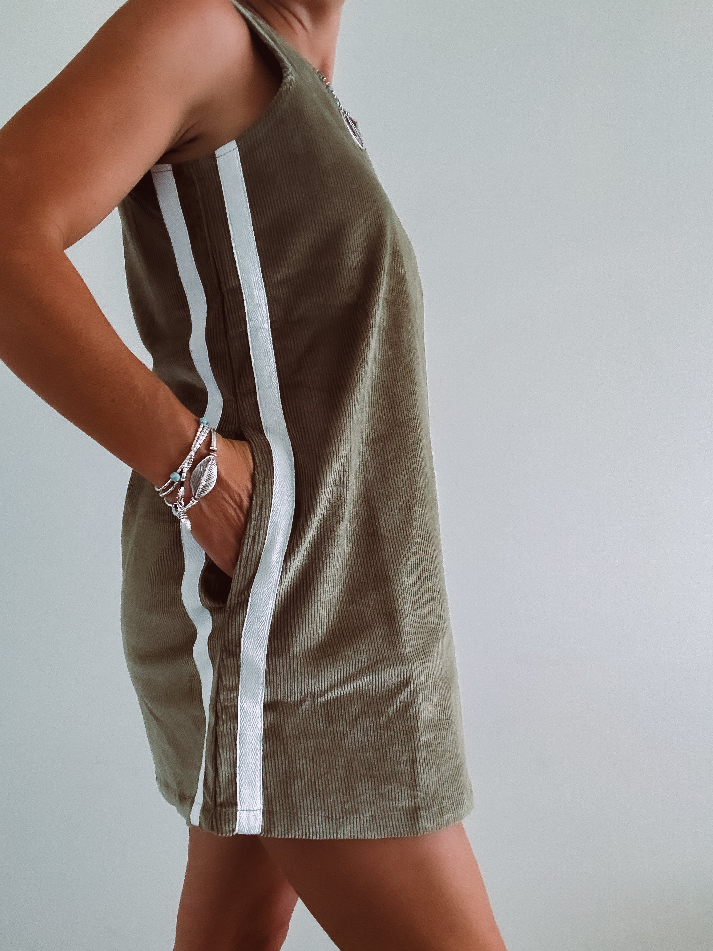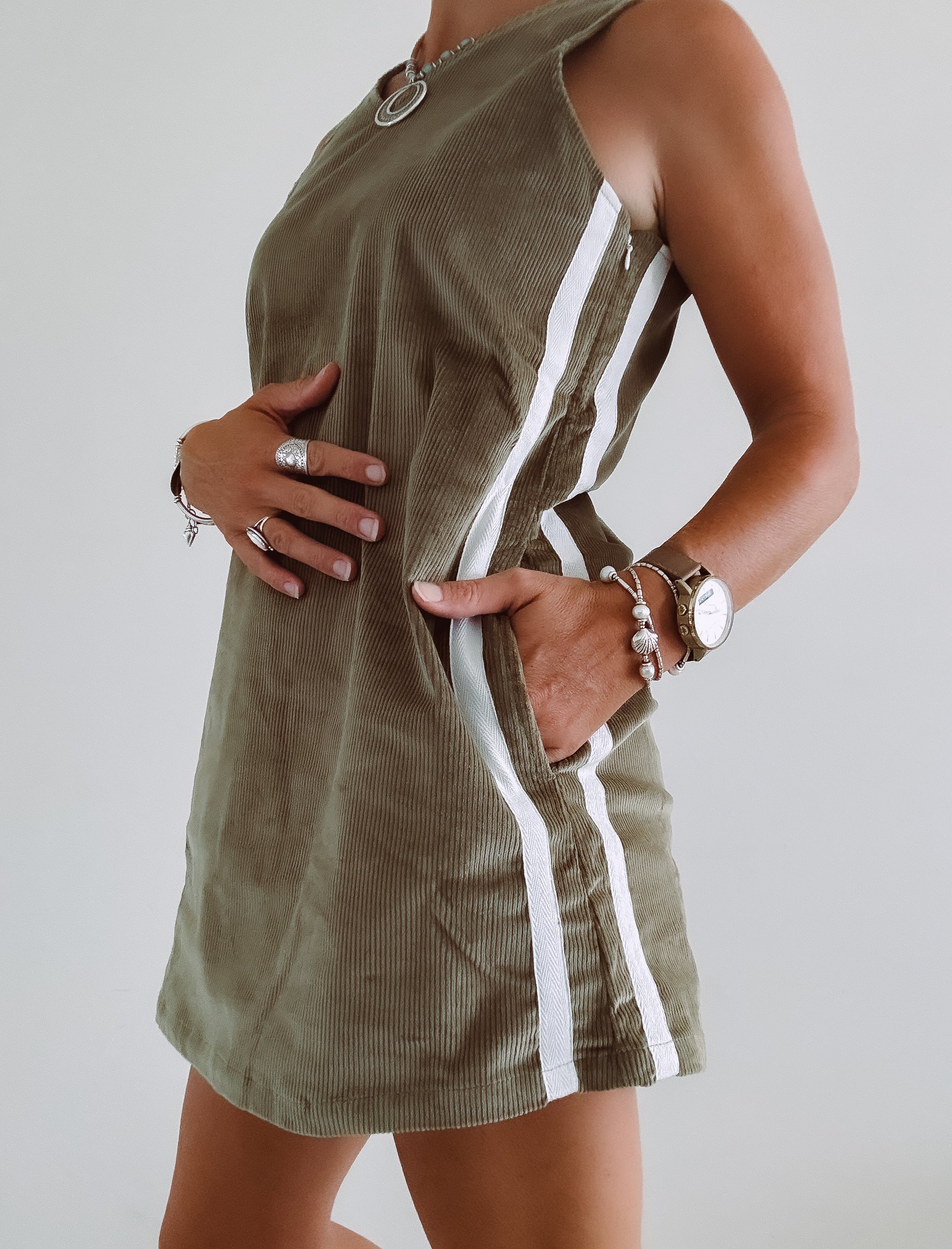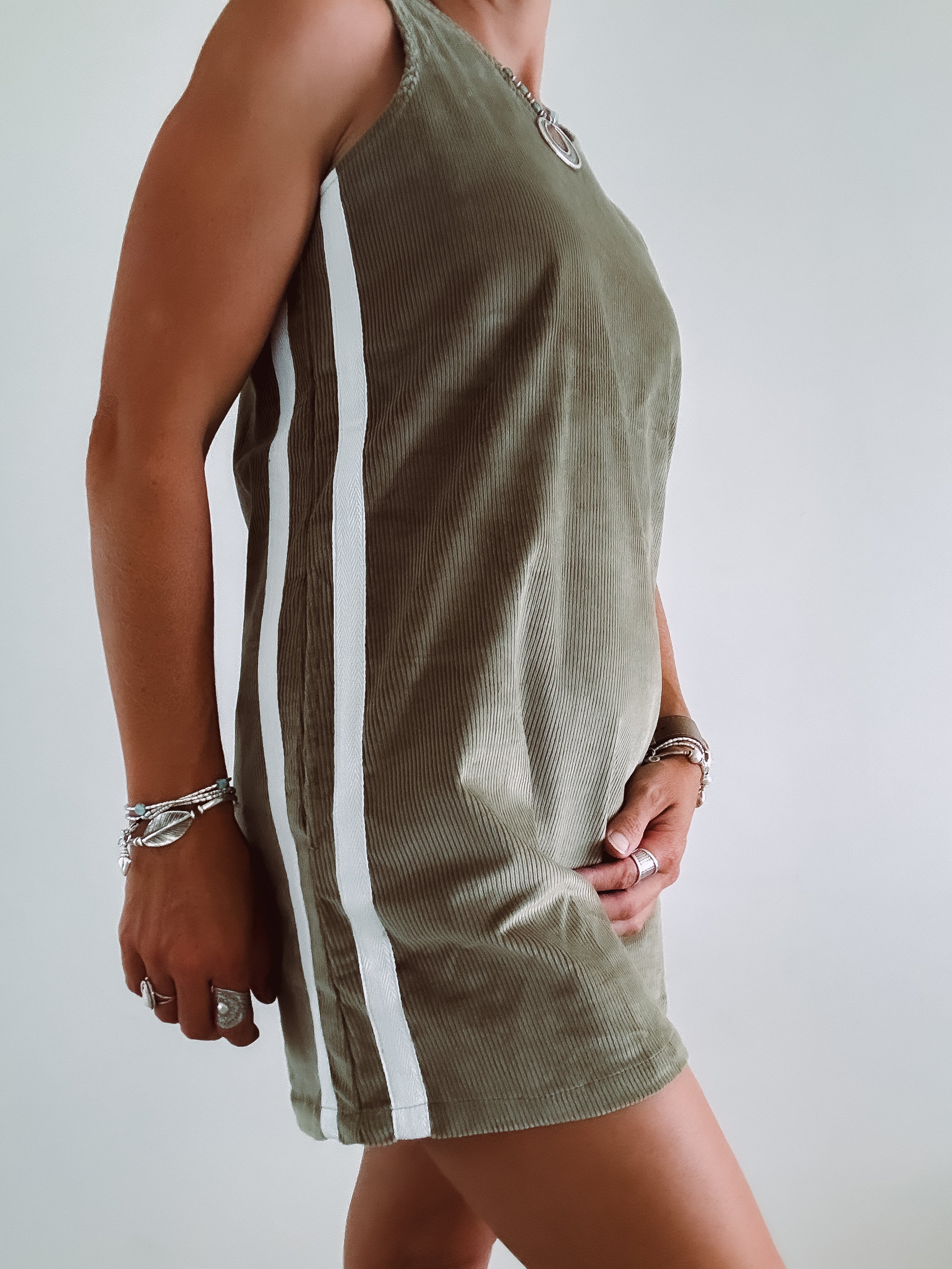 Coastal chill retro twin stripe cord dress - Khaki - Ladies - PRE SALE