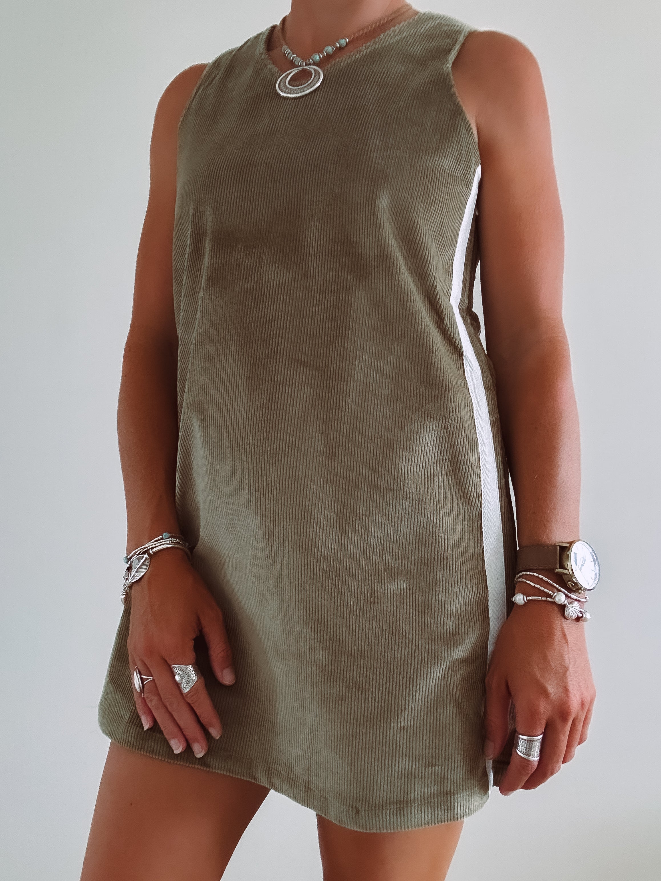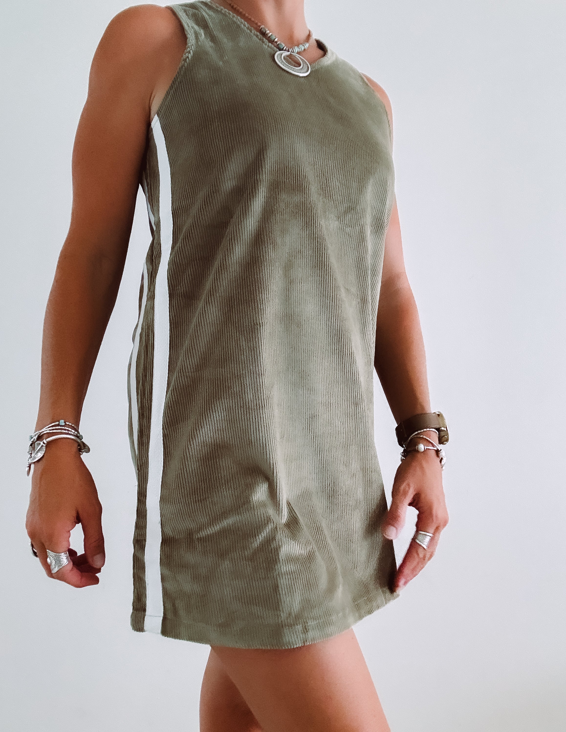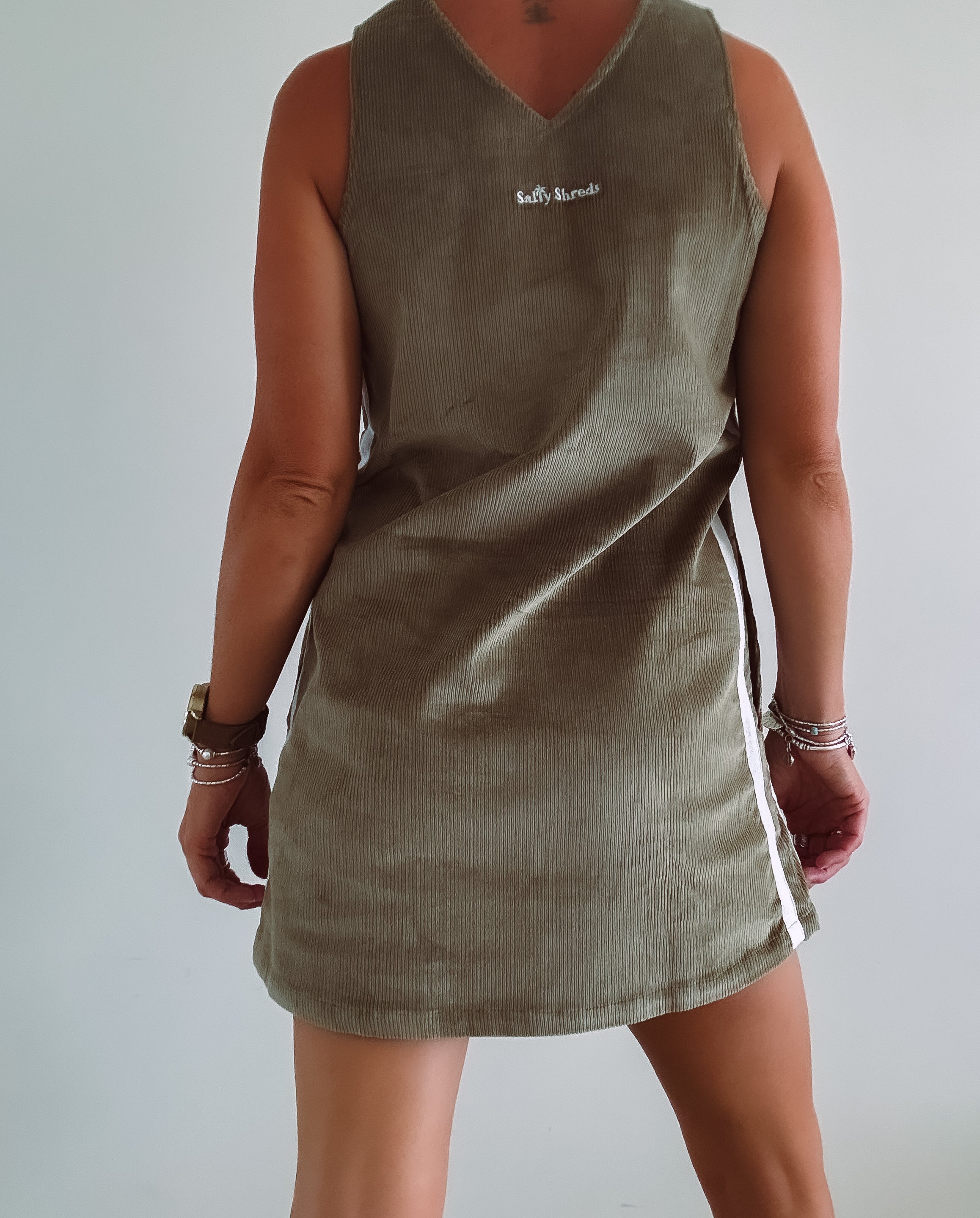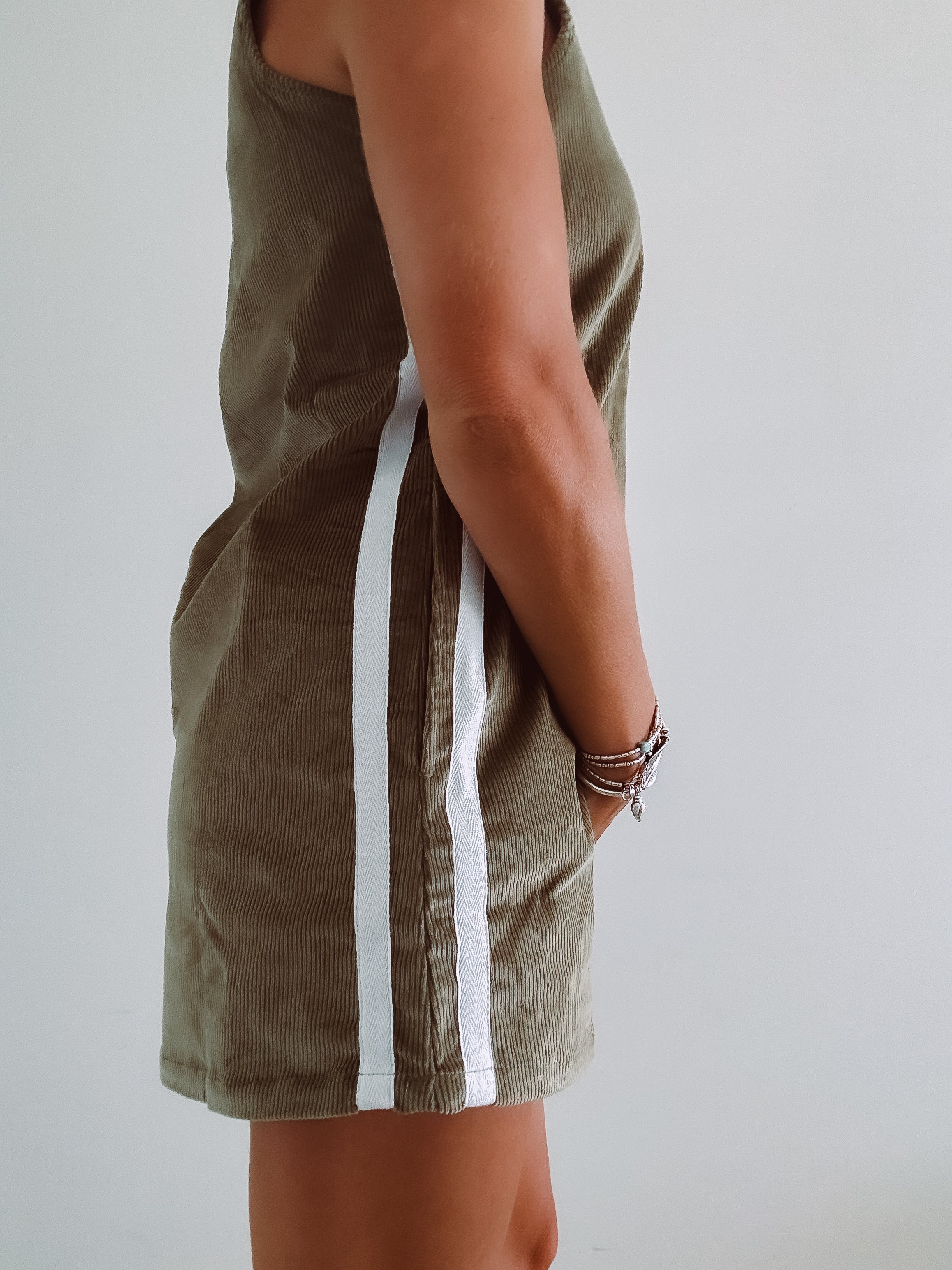 Coastal chill retro twin stripe cord dress - Khaki - Ladies - PRE SALE
