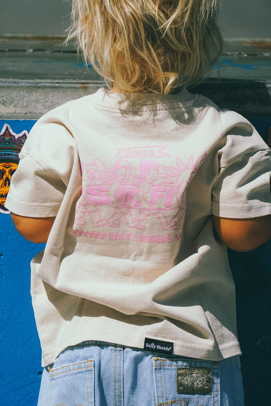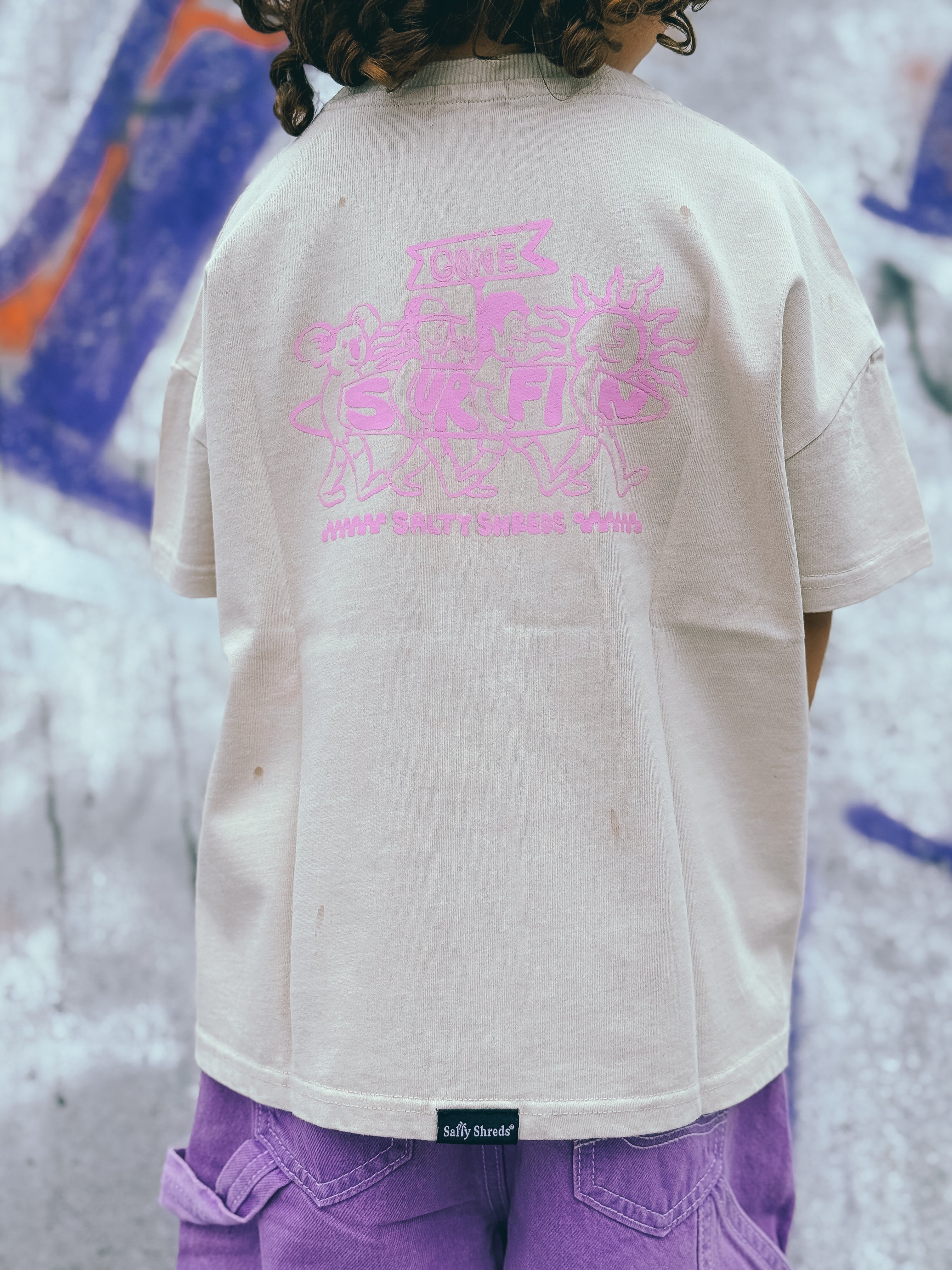 Gone Surfin vintage relaxed everyday tee - Natural shell - Groms