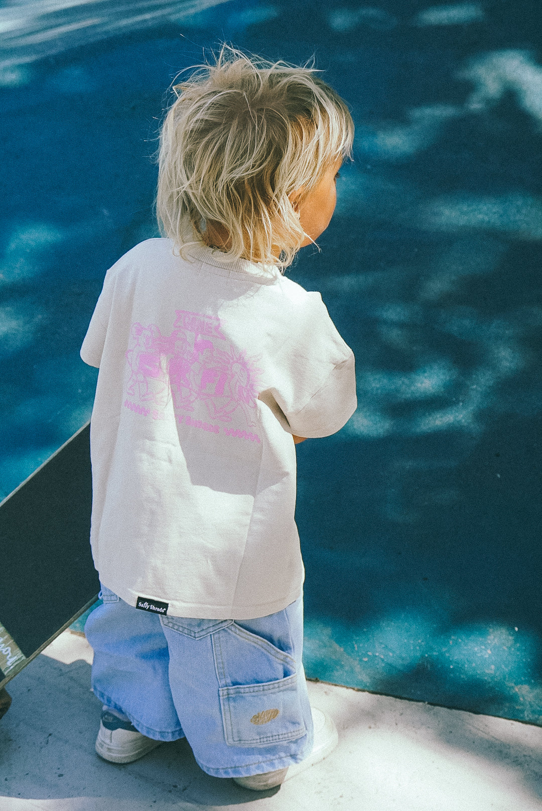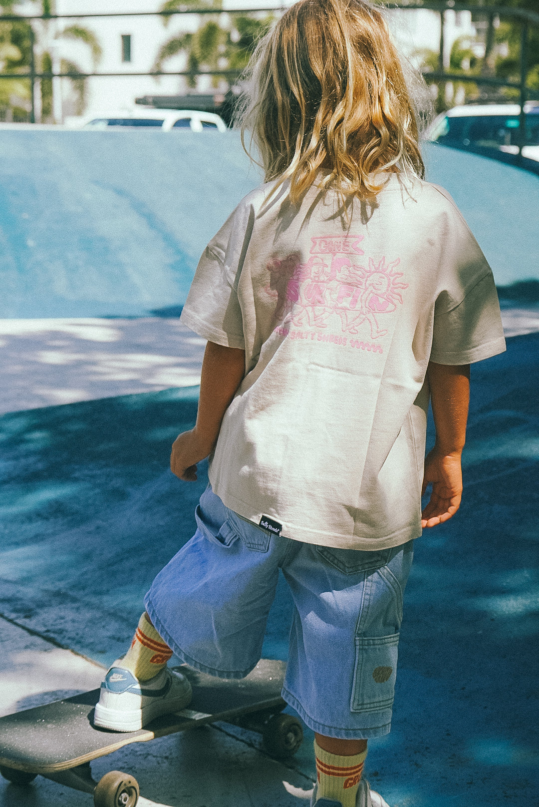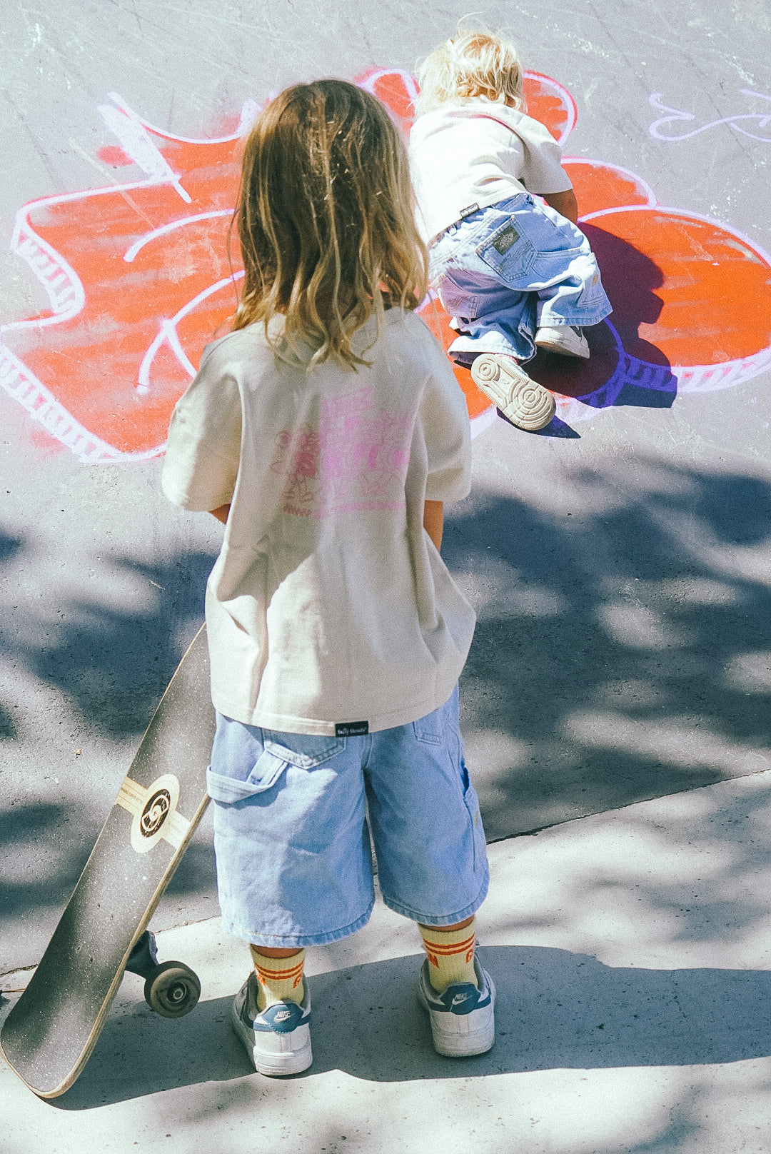 Designed from 100% organic cotton, featuring some fresh new artwork and vibrant tones, our new surf skate tees are a vibe! Mix & match these with any of our groms new shorts or denim range for an epic outfit.