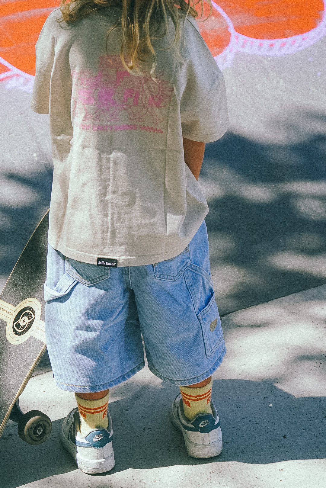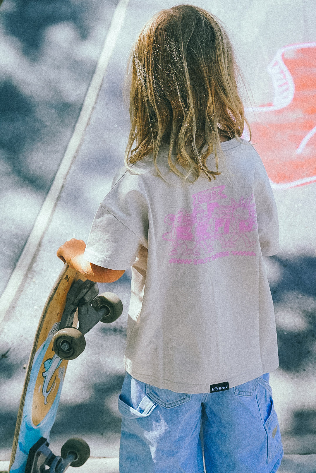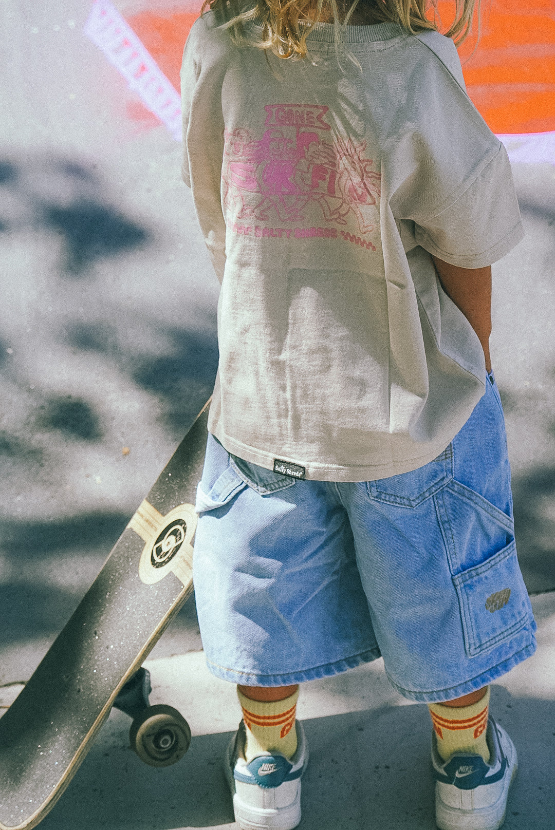 Designed from 100% organic cotton, featuring some fresh new artwork and vibrant tones, our new surf skate tees are a vibe! Mix & match these with any of our groms new shorts or denim range for an epic outfit.