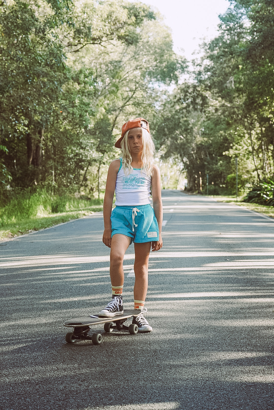 The ultimate groms skate short! Aimed at the fearless little ladies that love to take themselves on endless surf skate adventures in style.