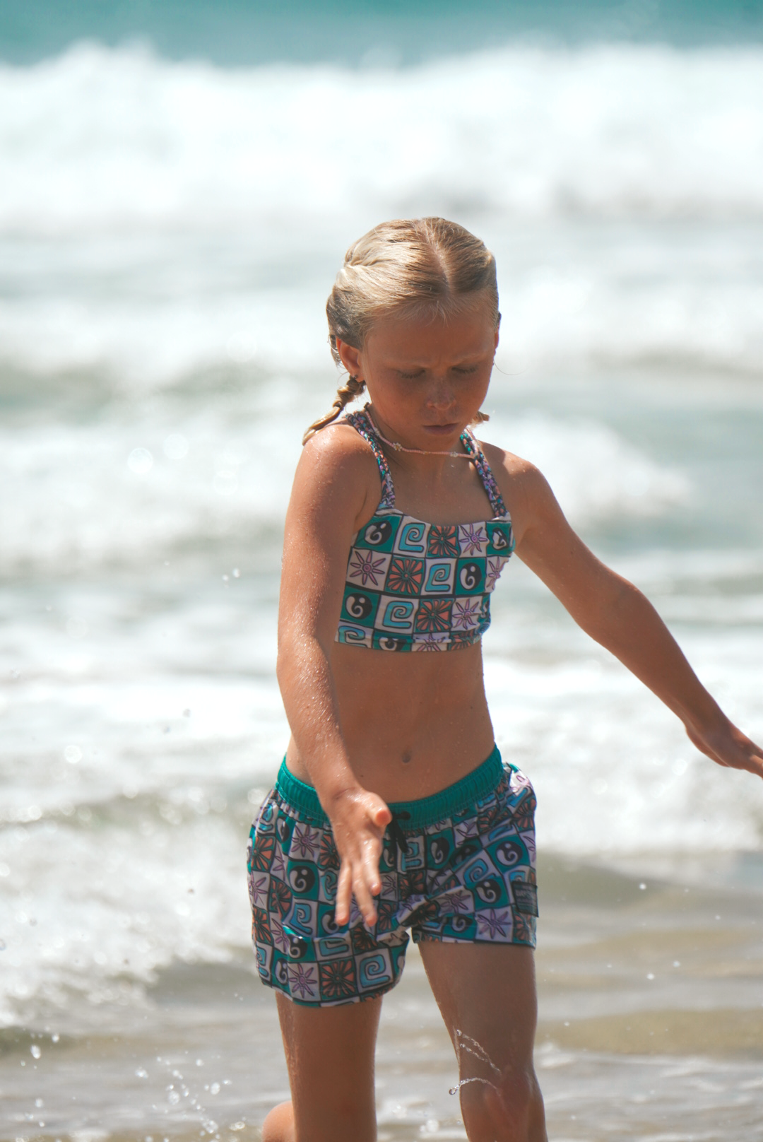 Occy is 21 months old, a little chunky and wearing size 2-3y ( See other board shorts for fit)