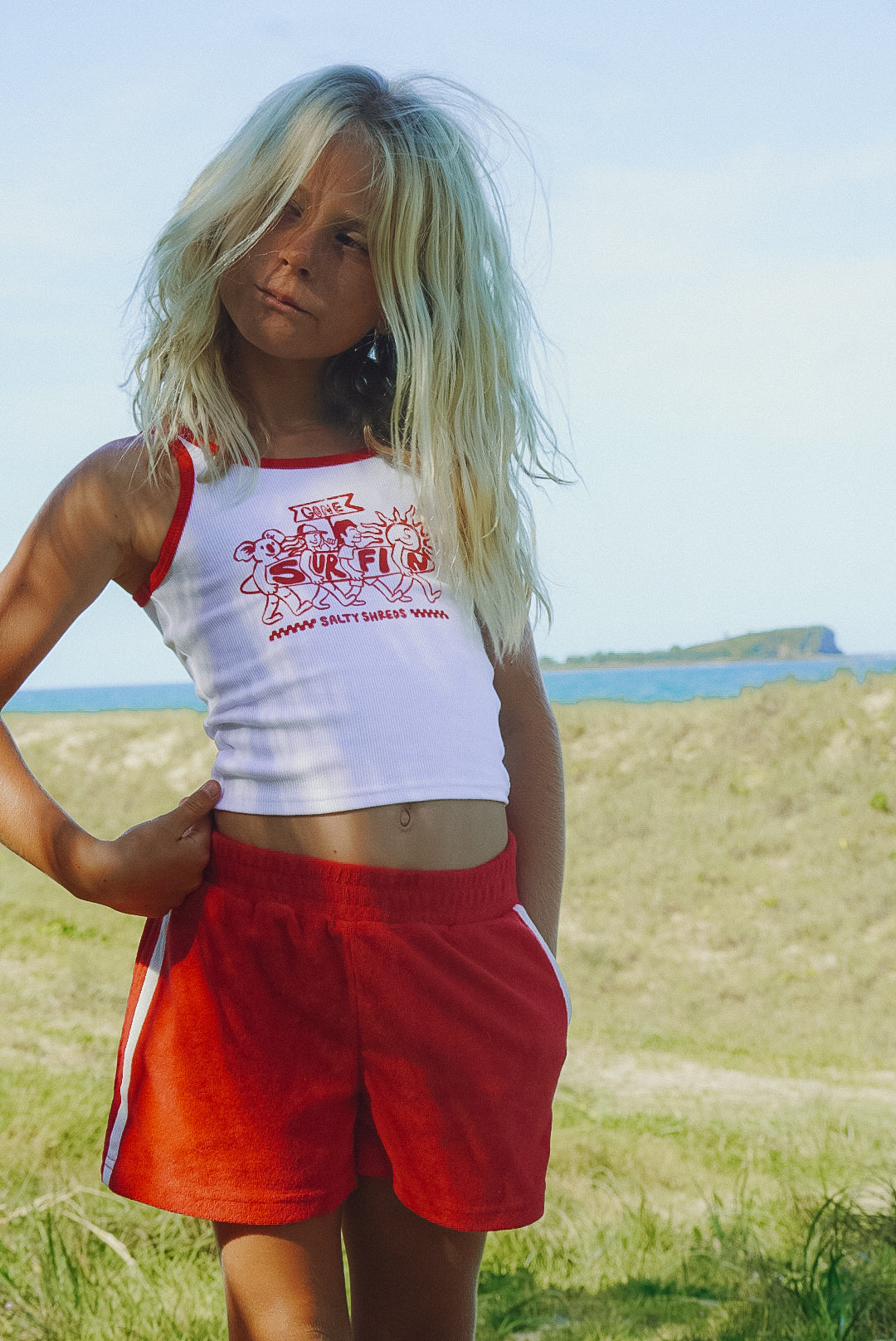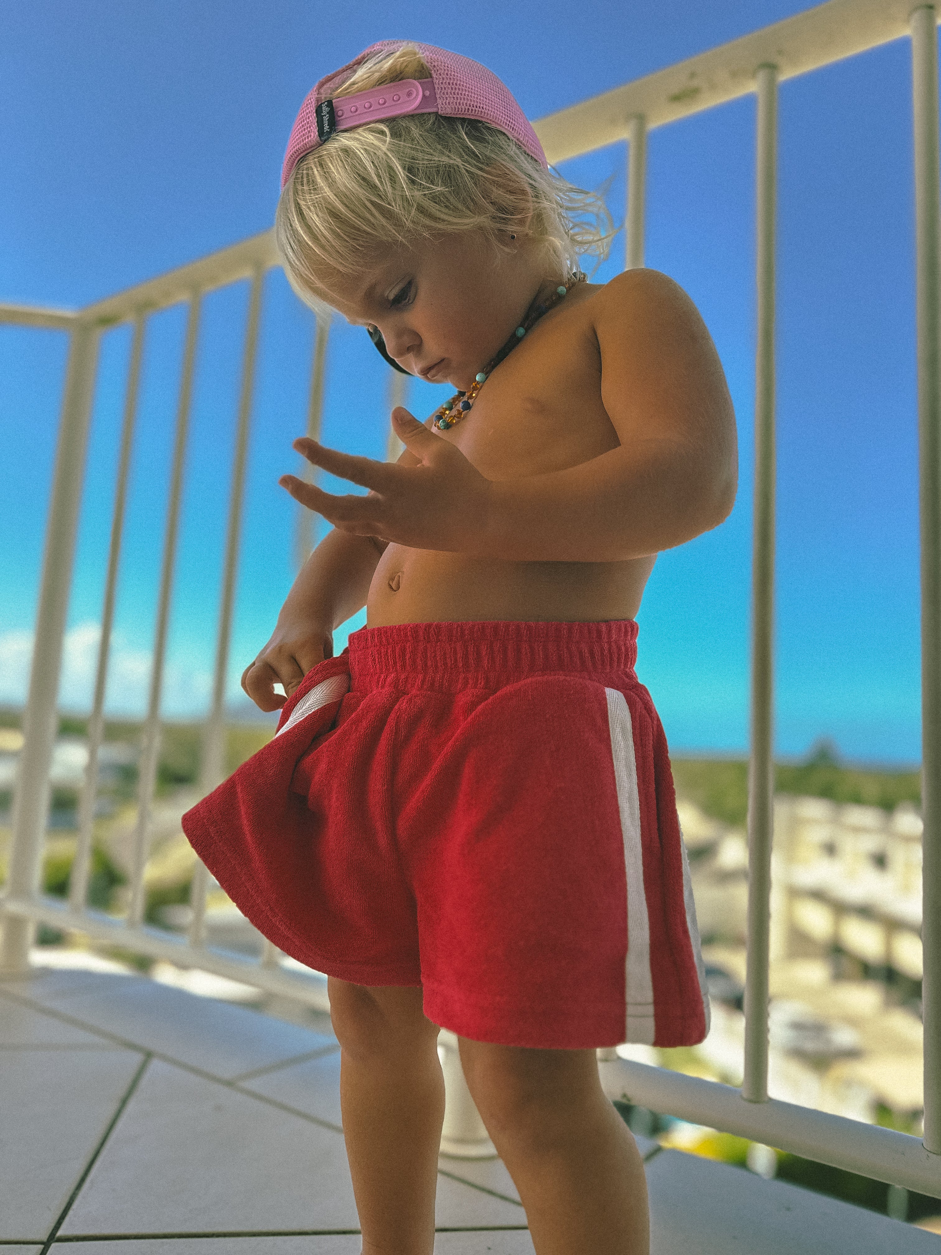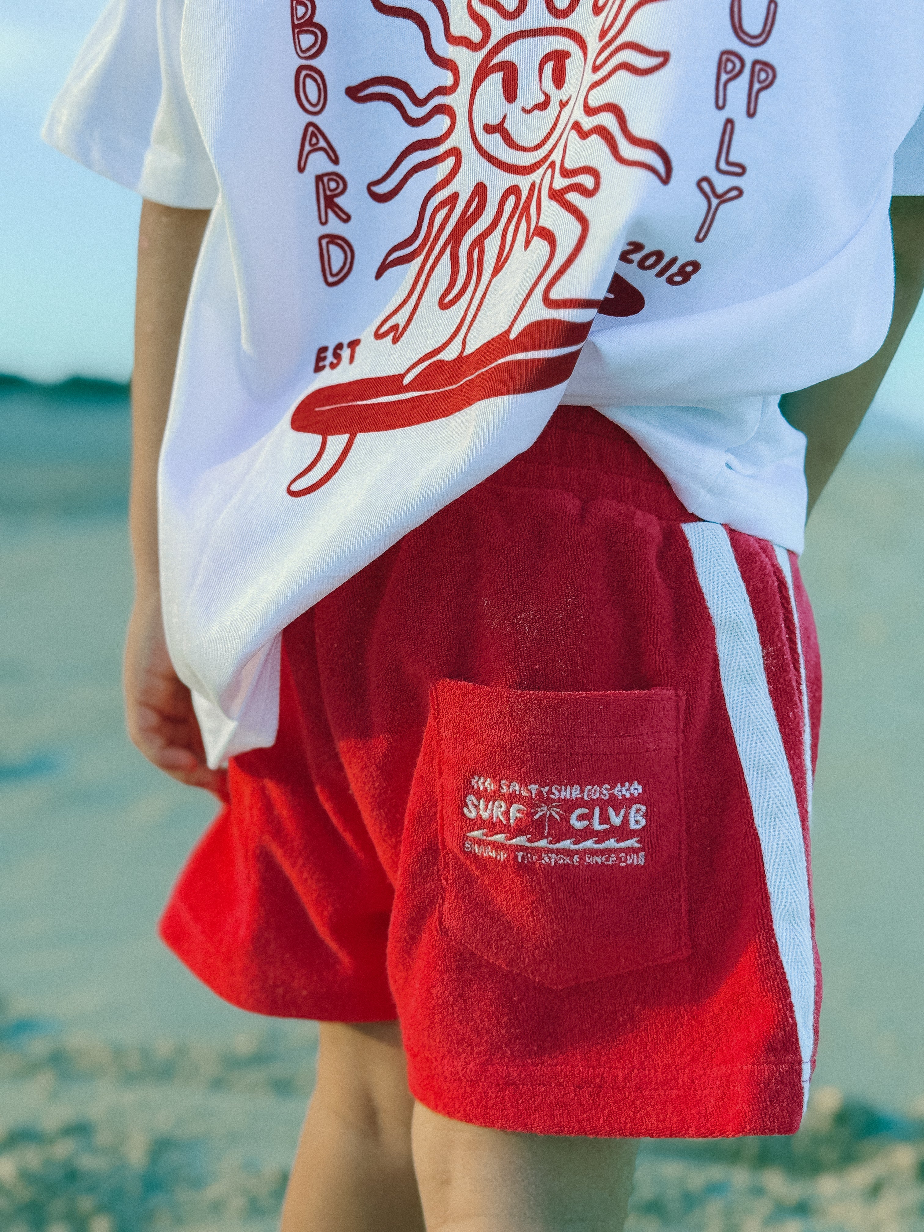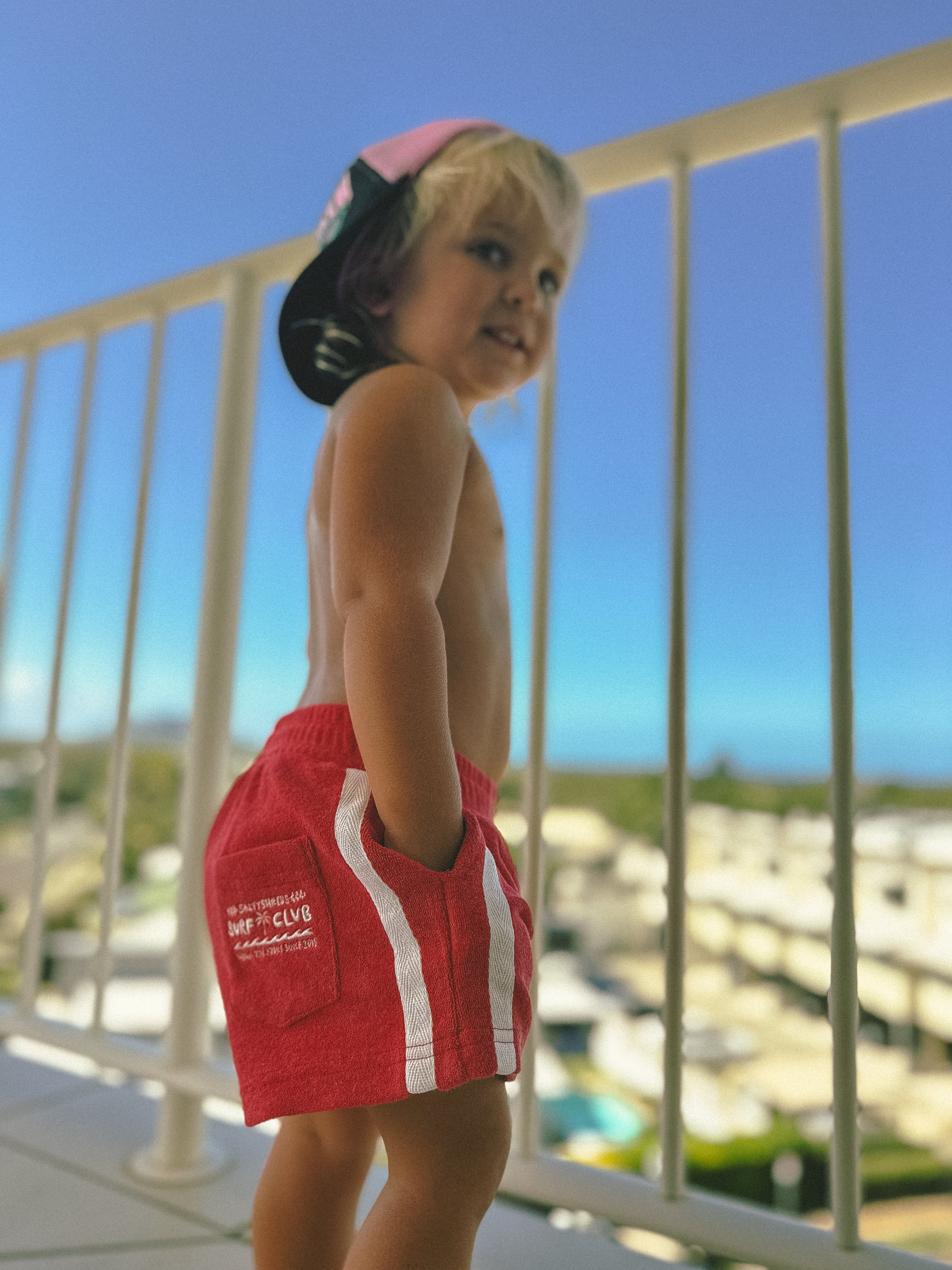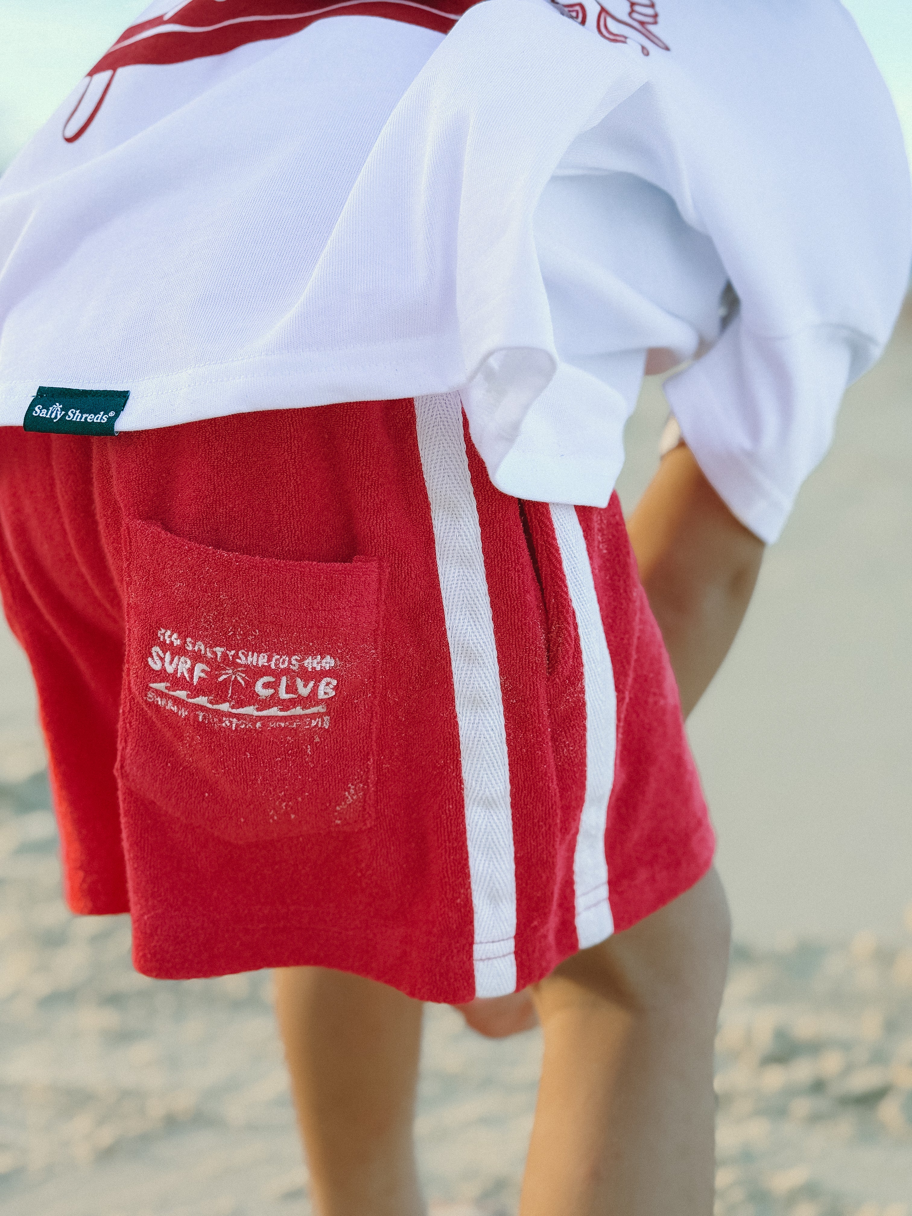Surf club retro towelling short - Red - Groms