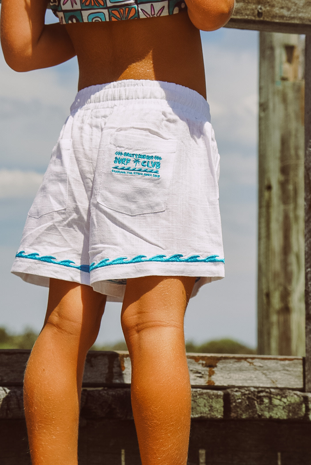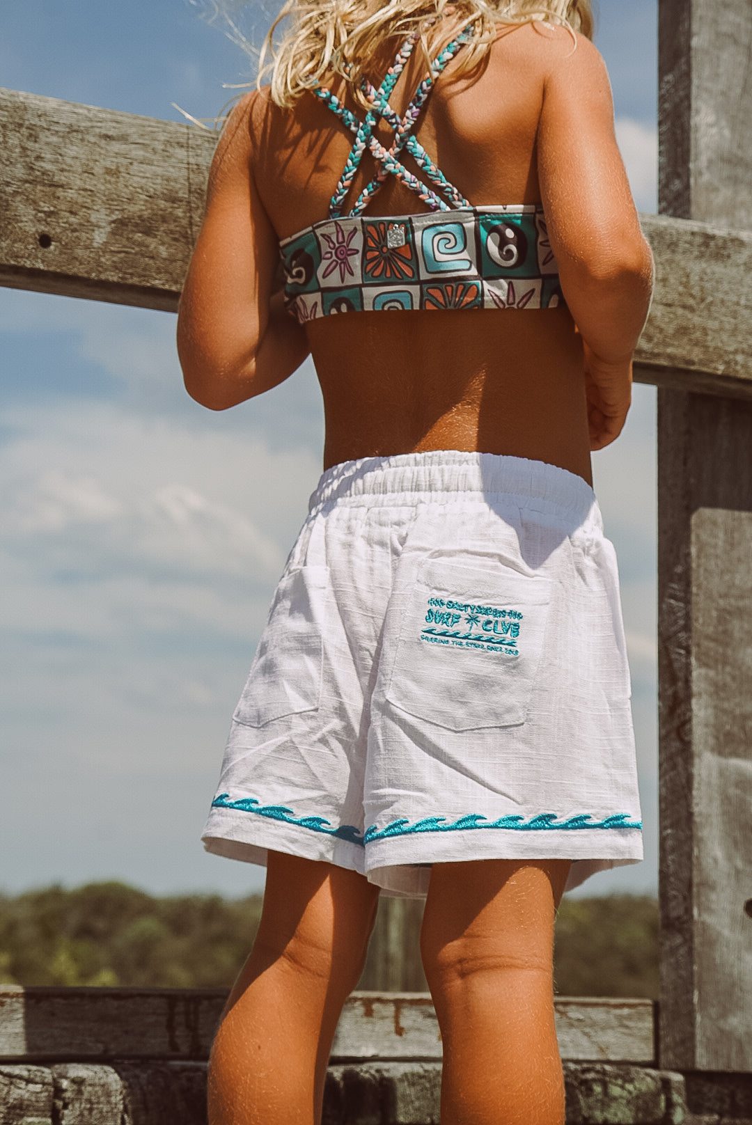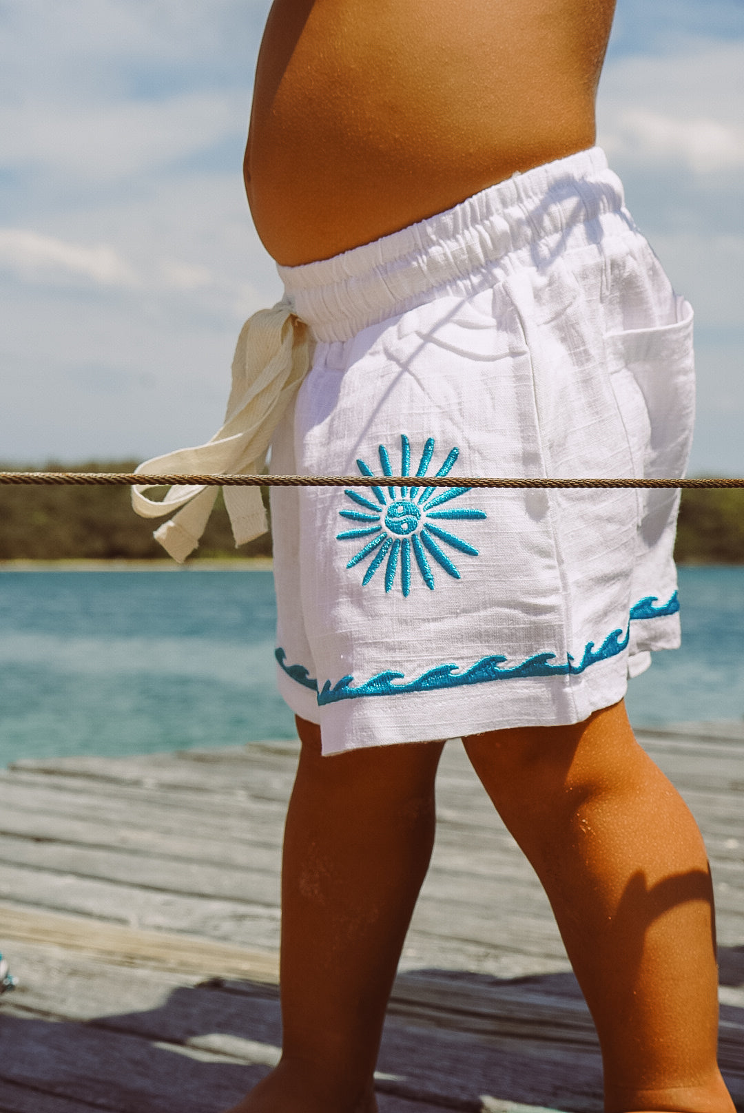 Yin yang, sunshine & endless waves linen beach short - White - Groms
