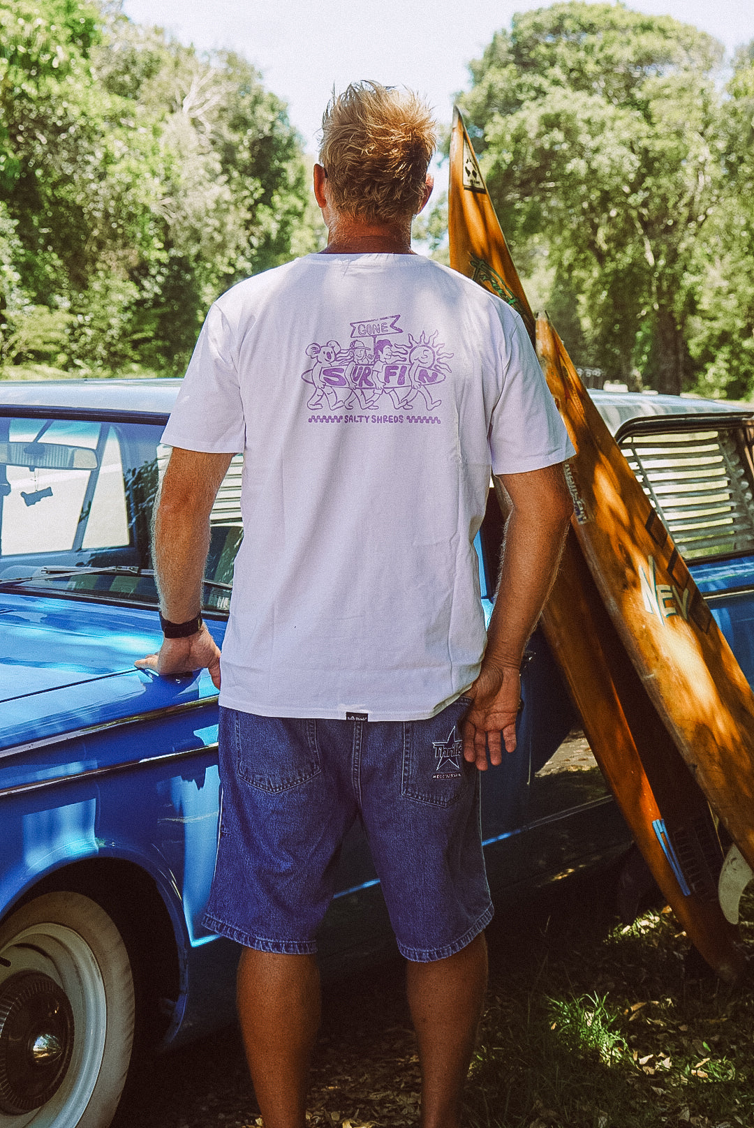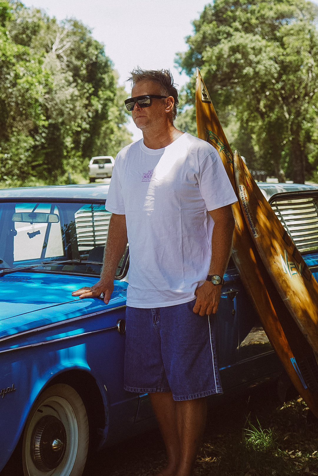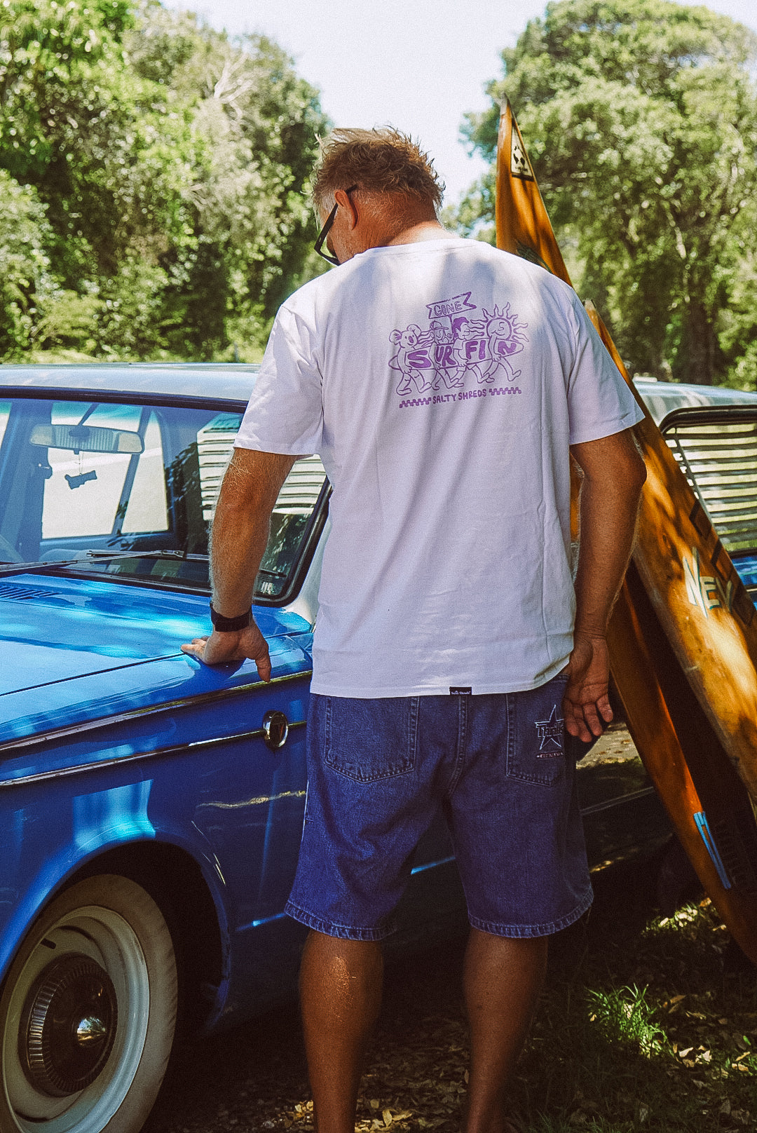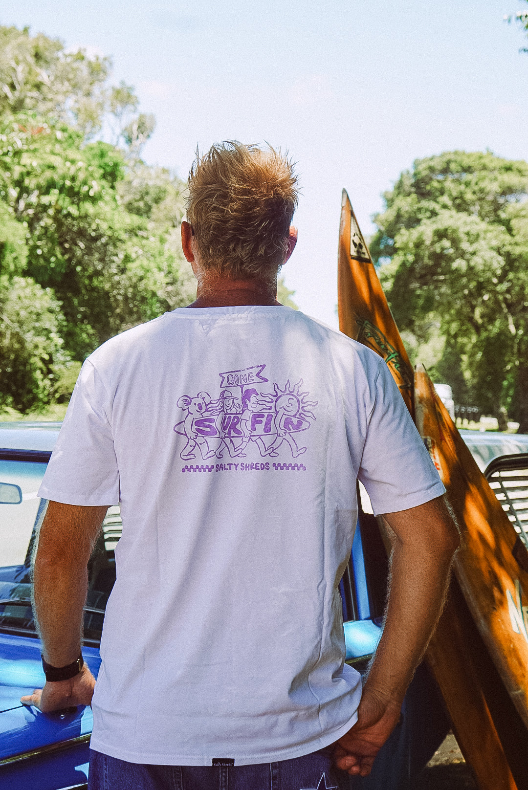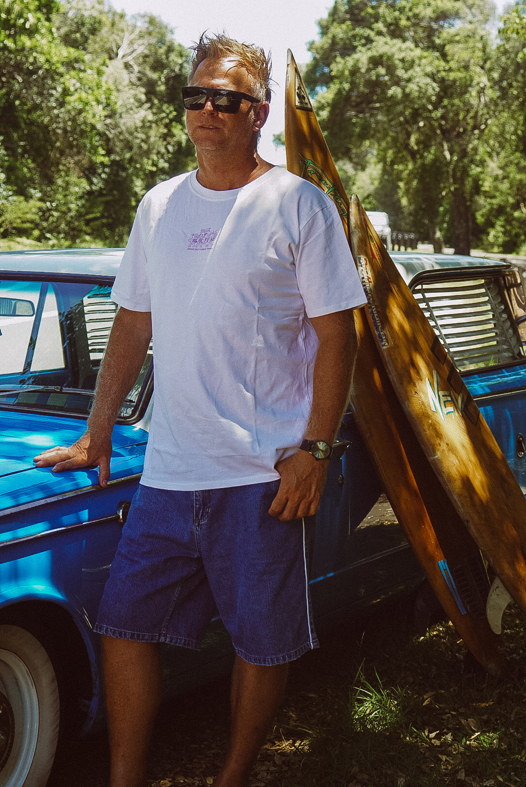 Gone surfin relaxed everyday tee - white/ purple print - Mens
