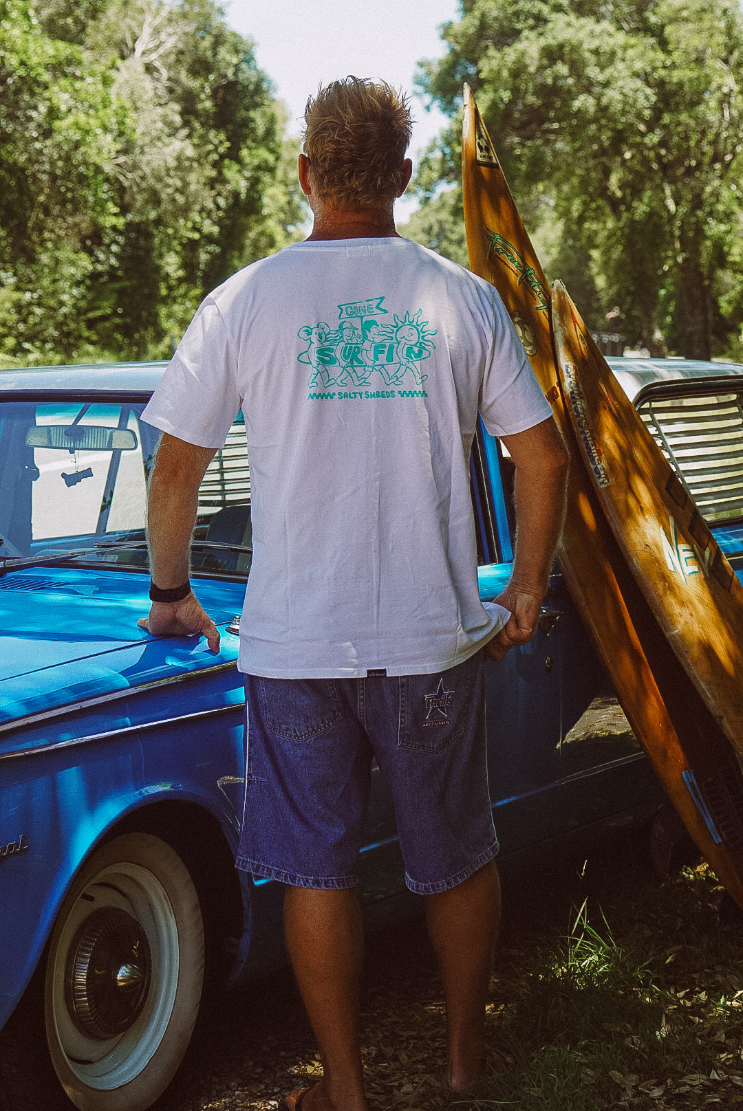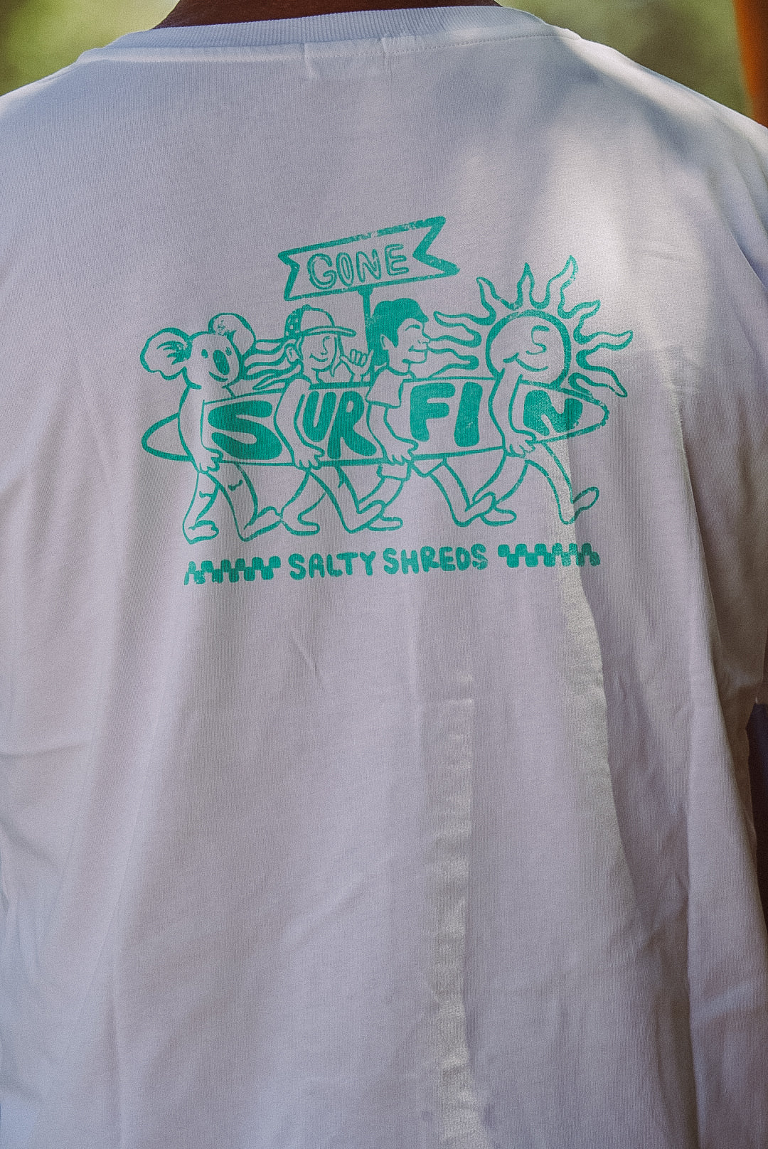 Gone surfin relaxed everyday tee - White/ Green print - Mens
