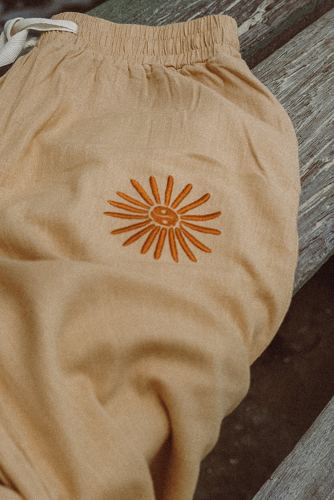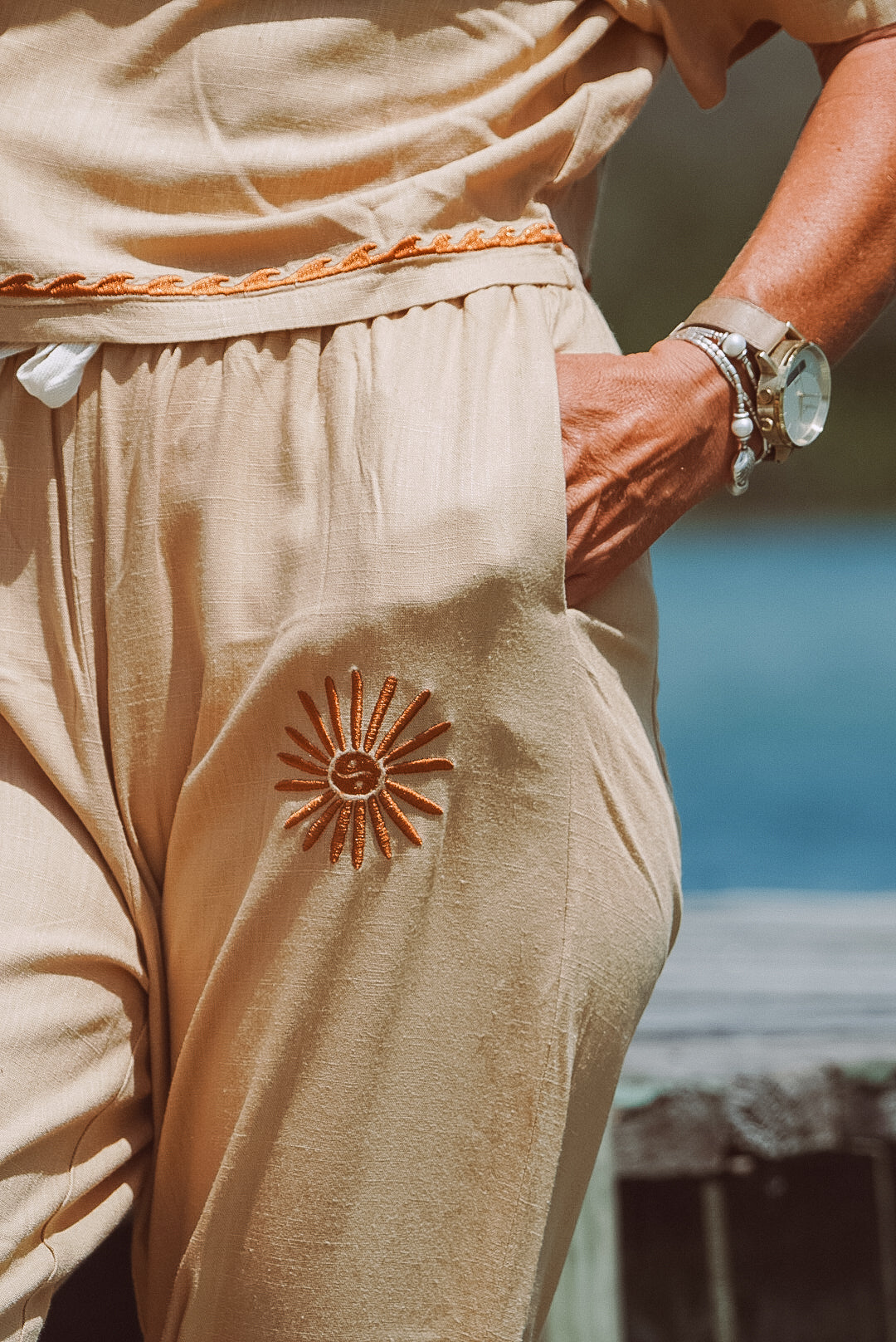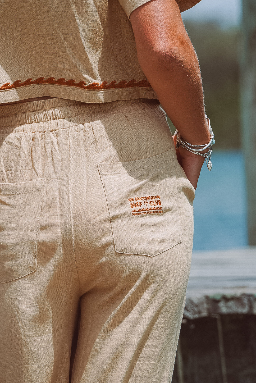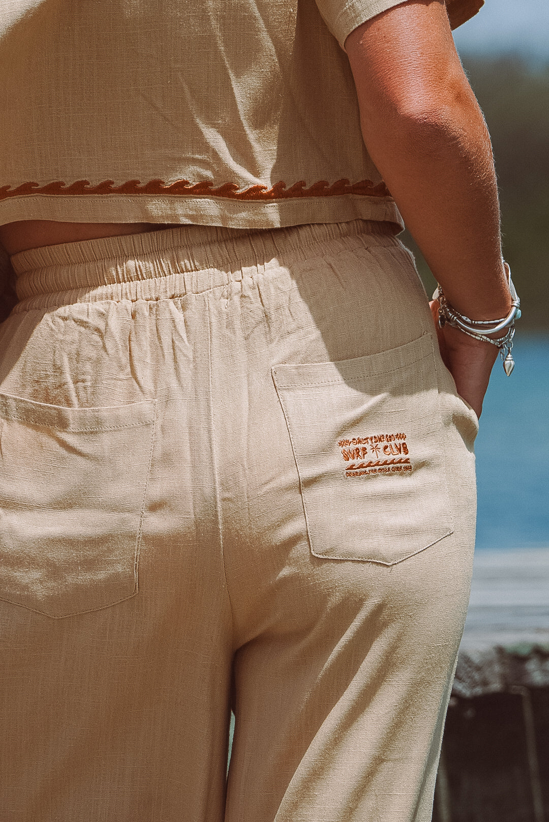 Yin yang, sunshine & endless waves linen beach pant - Beach beige - Ladies