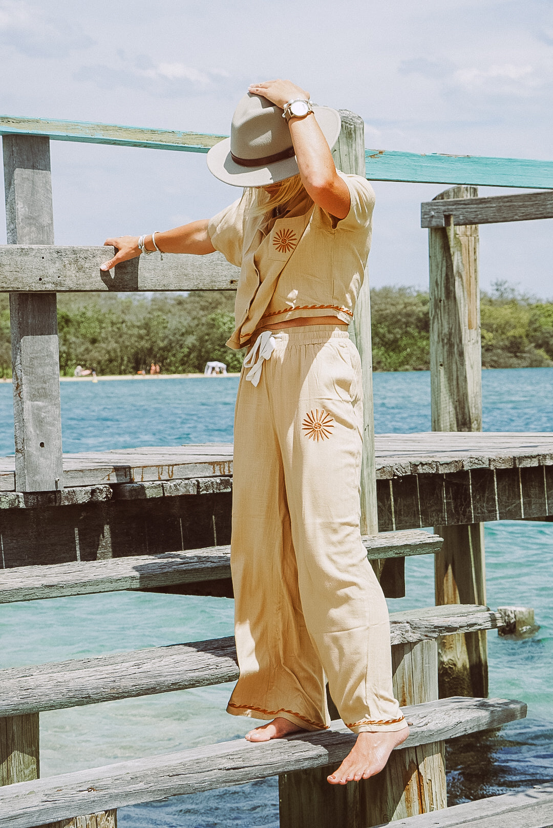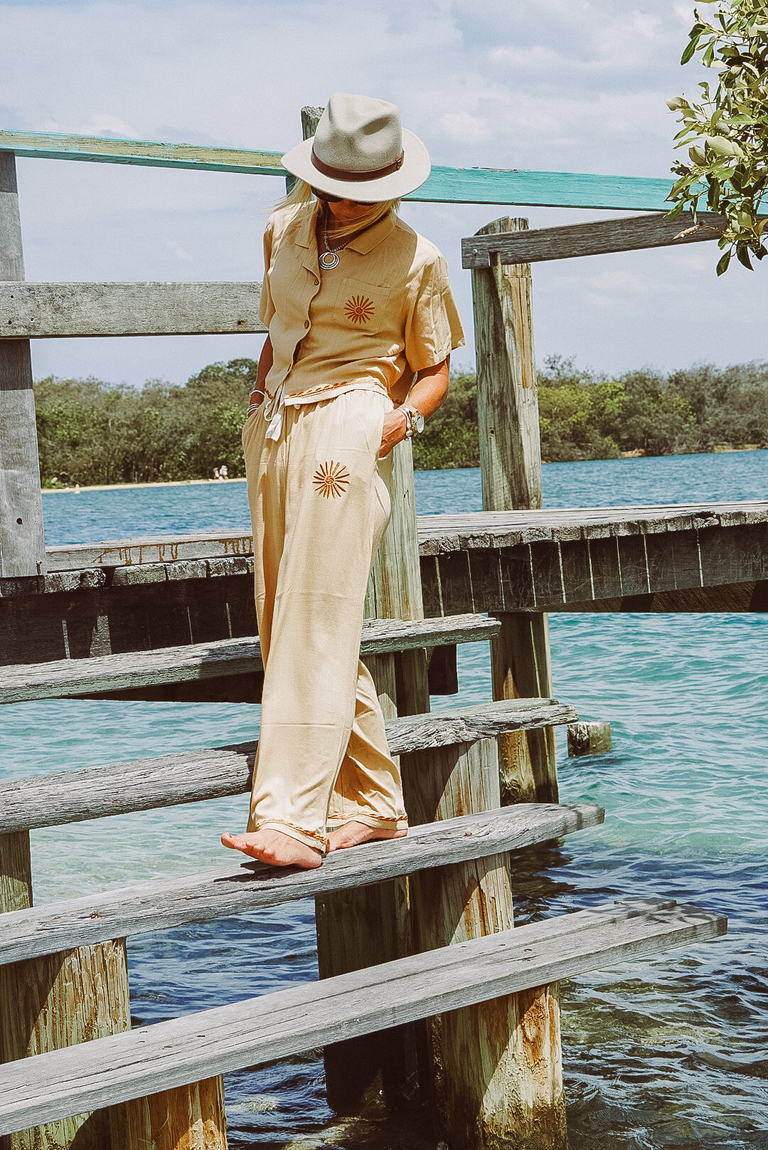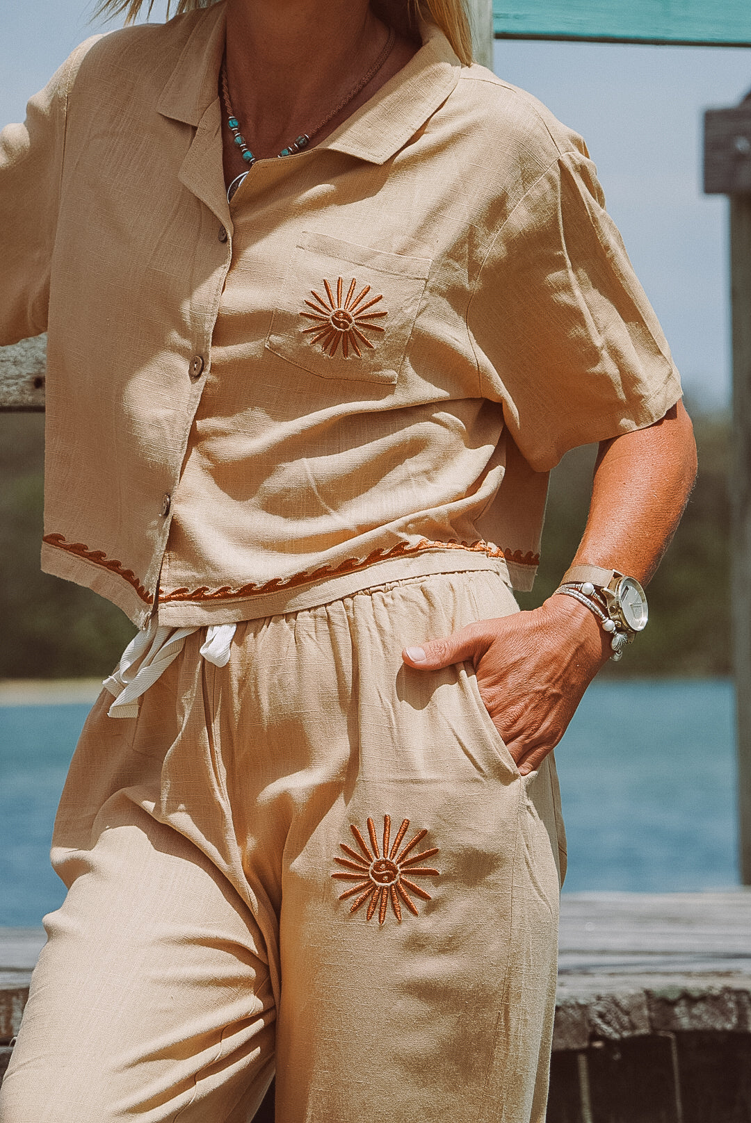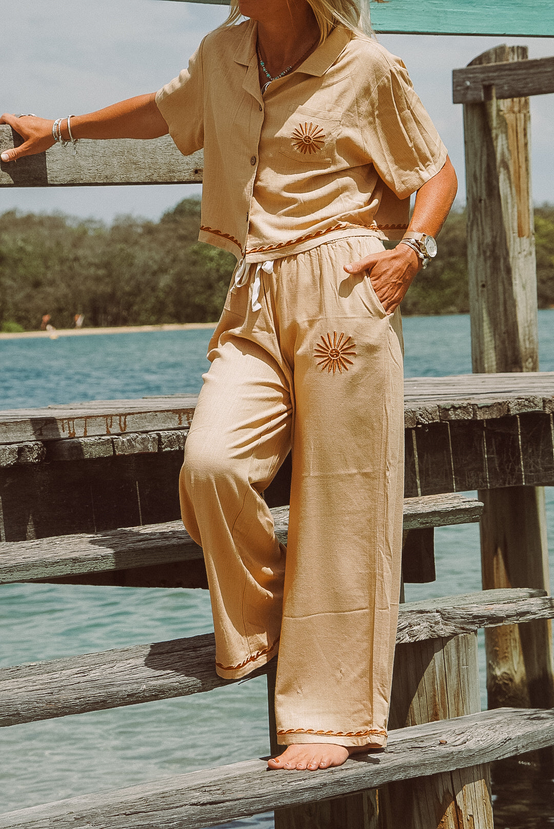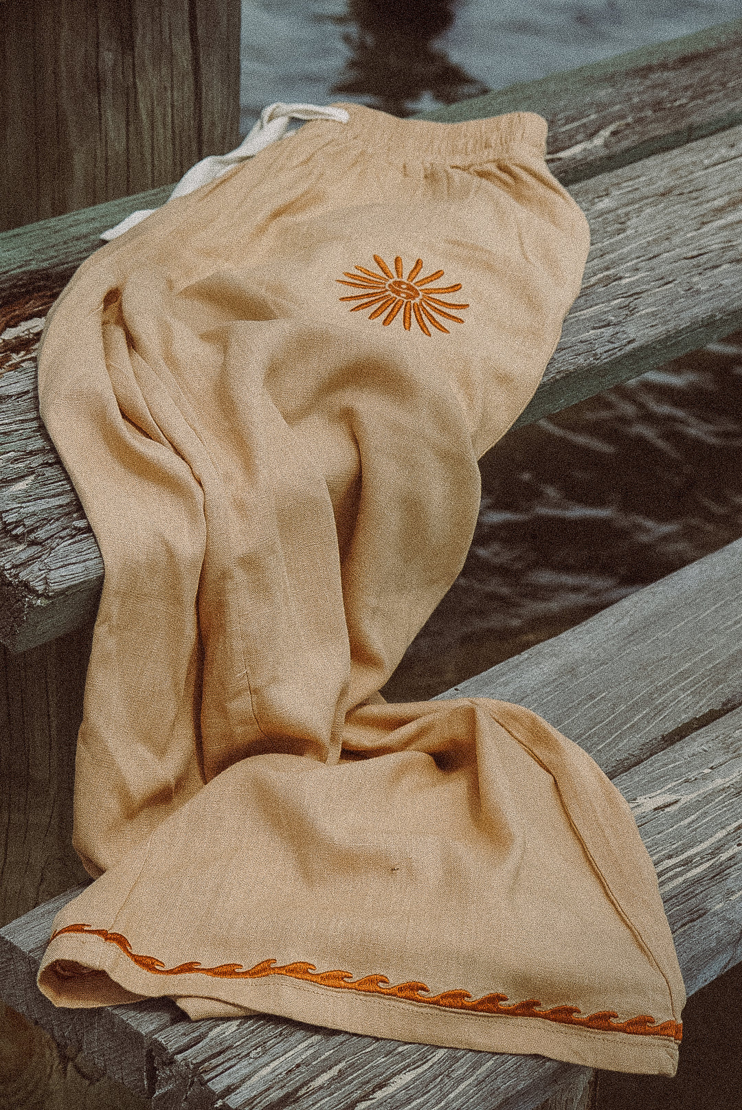 Yin yang, sunshine & endless waves linen beach pant - Beach beige - Ladies