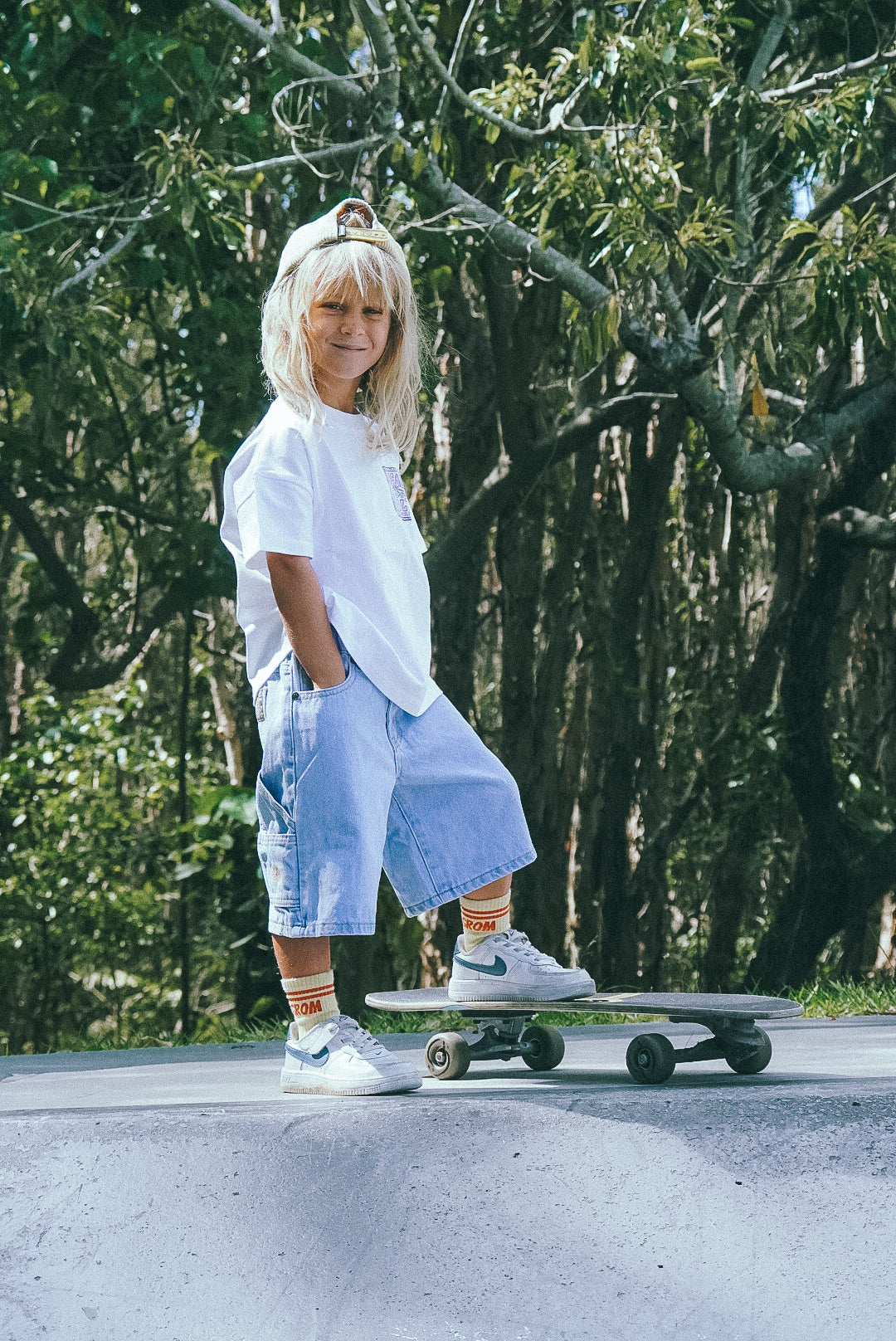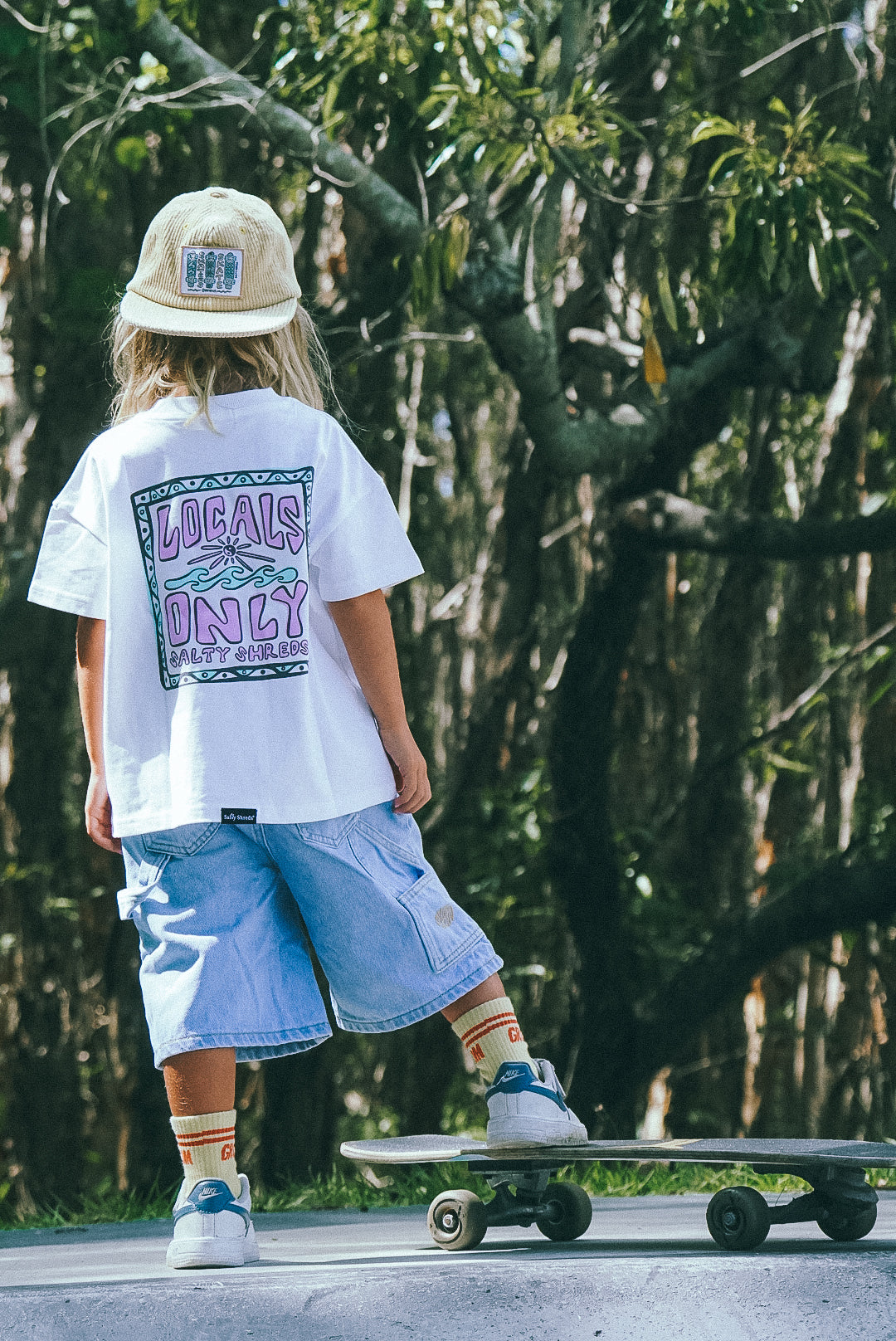 Our baggy unisex jorts are back, and better than ever ! Featuring a new & improved wide leg design, with a super soft stretch waist for ultimate comfort, these shorts will carry your groms, little & big through all their surf skate adventures.