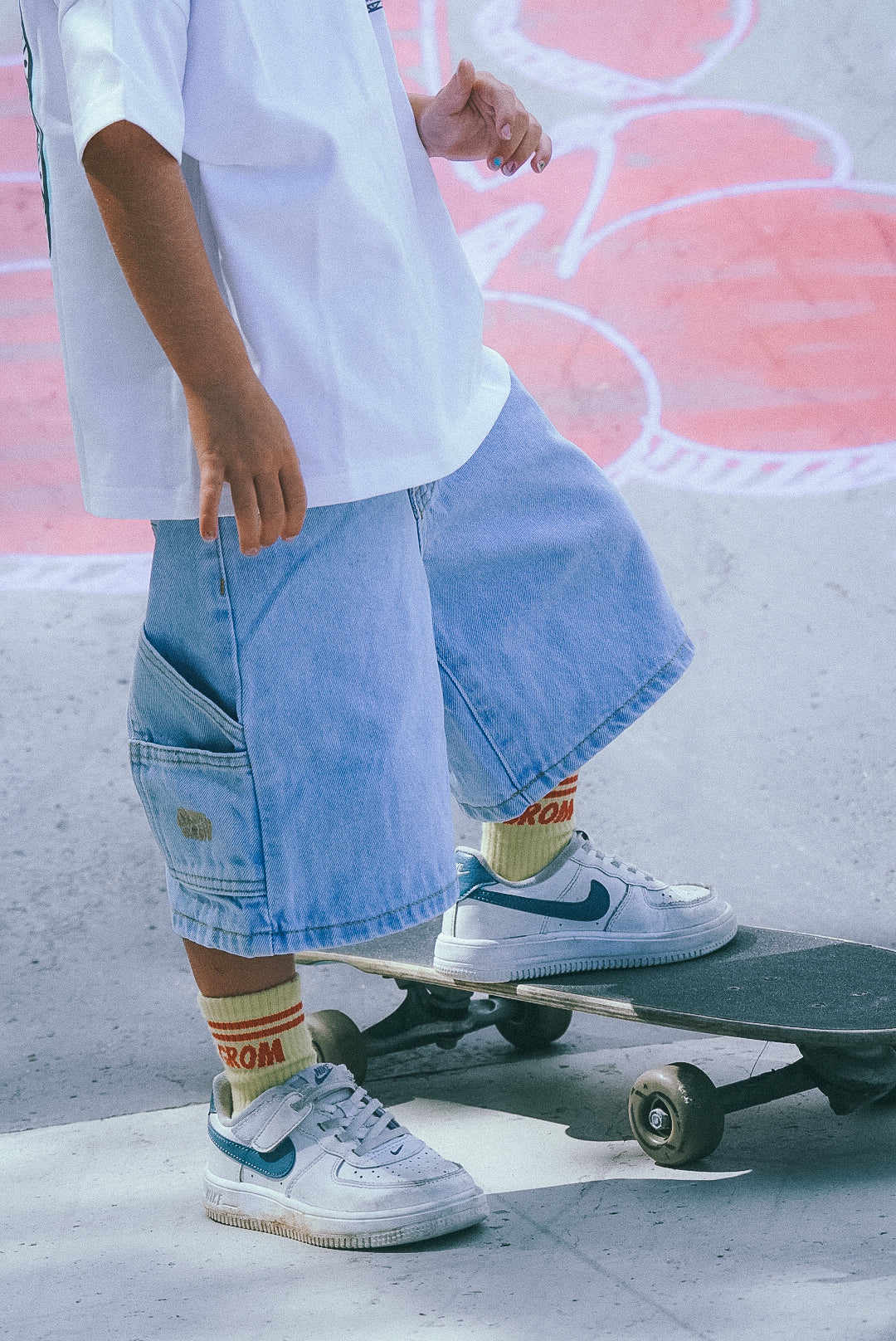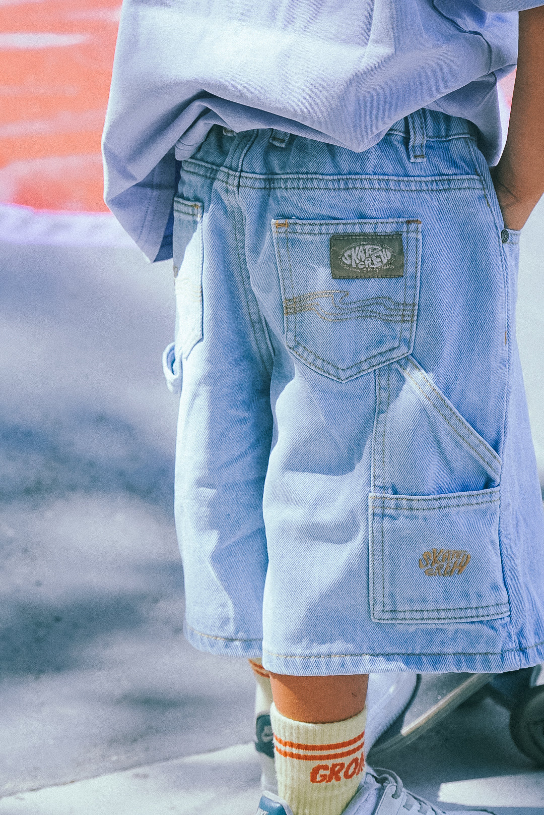 Skate crew baggy vintage denim short - Faded blue - Unisex Groms