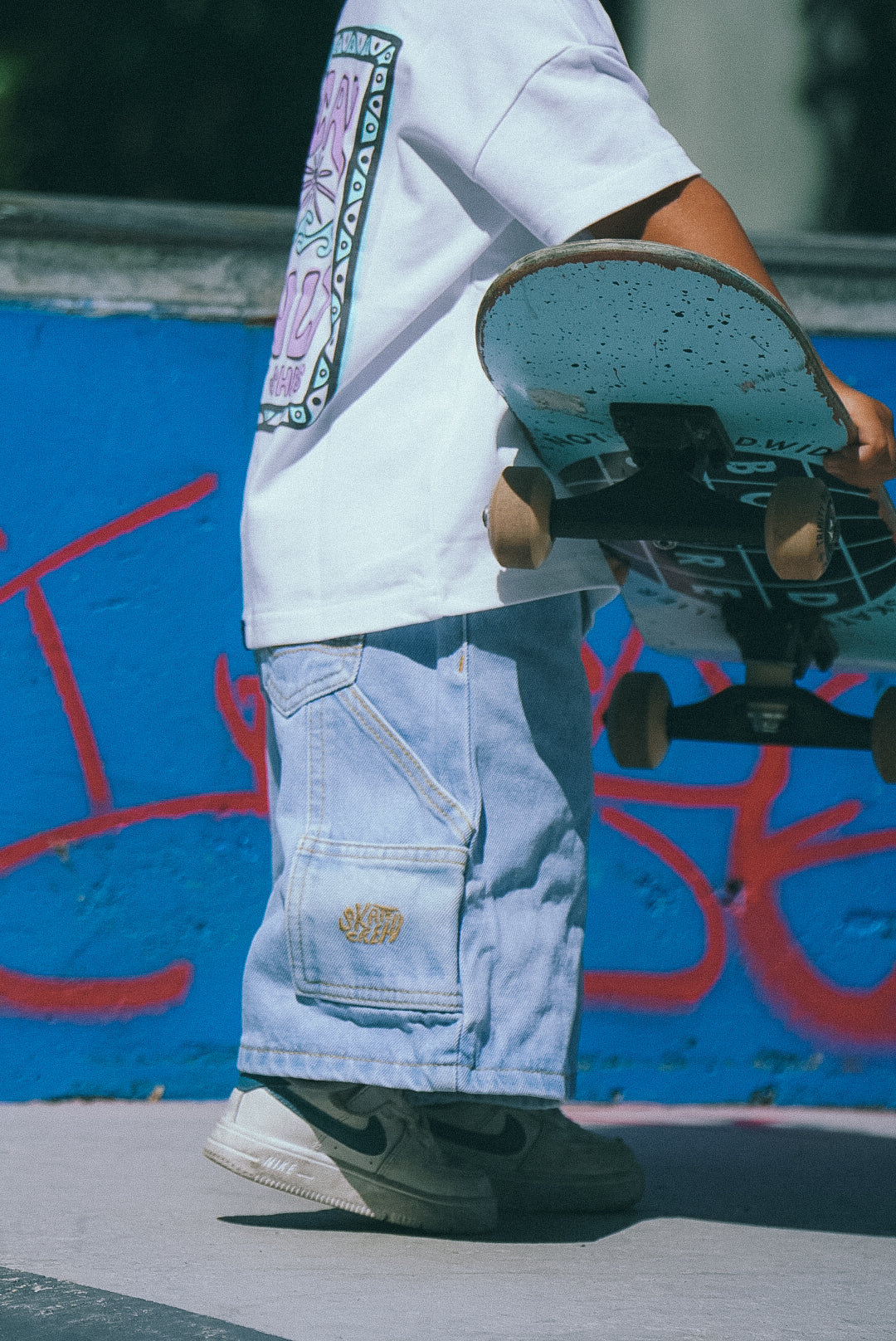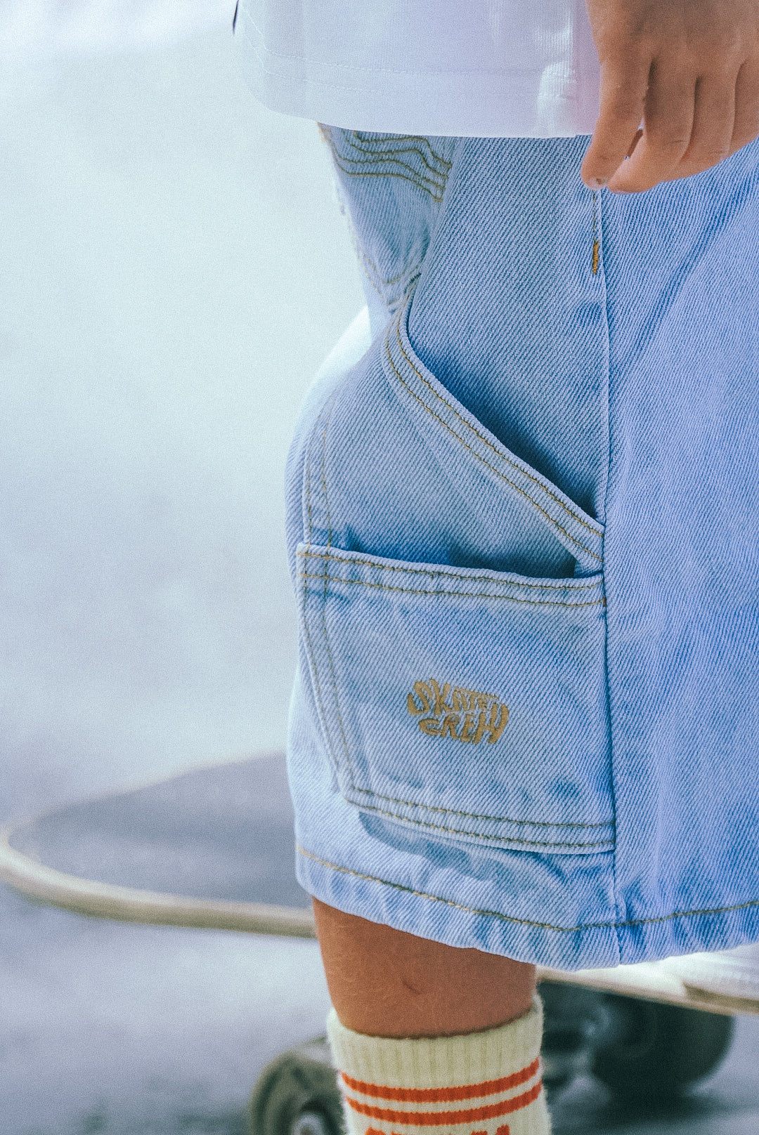- Embroidered ' skate crew' logo detail